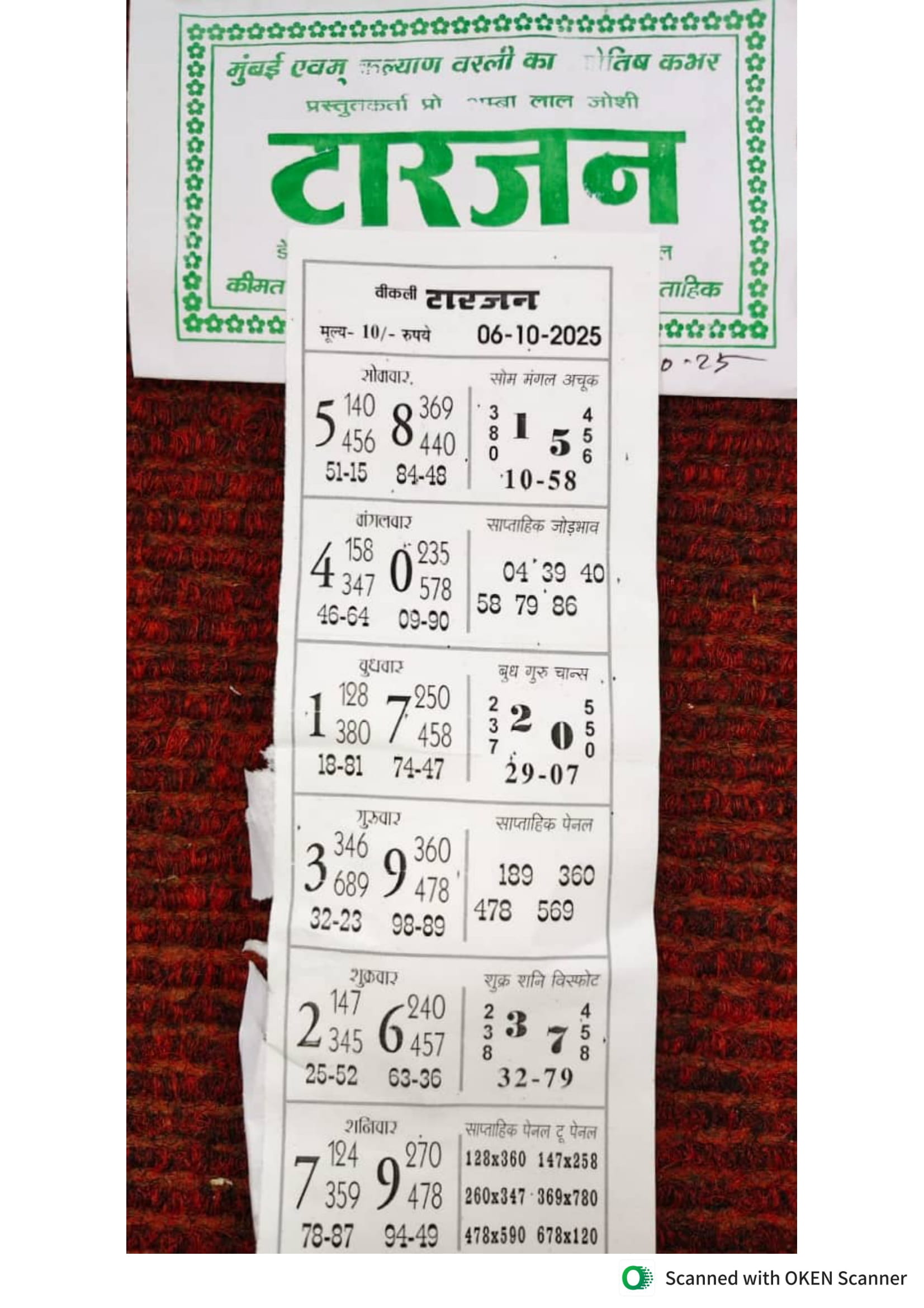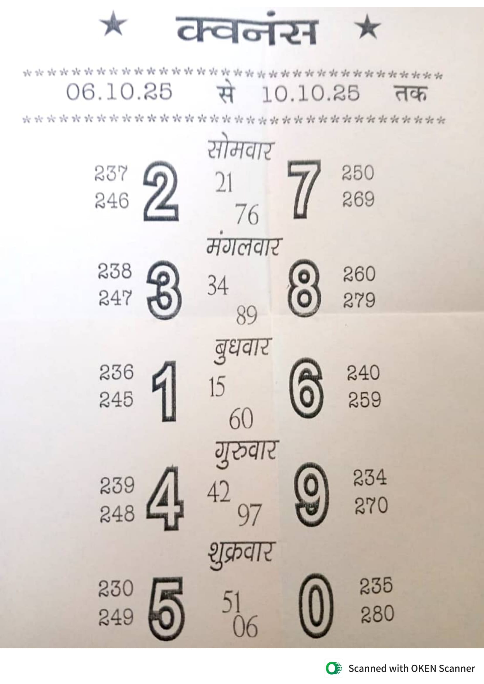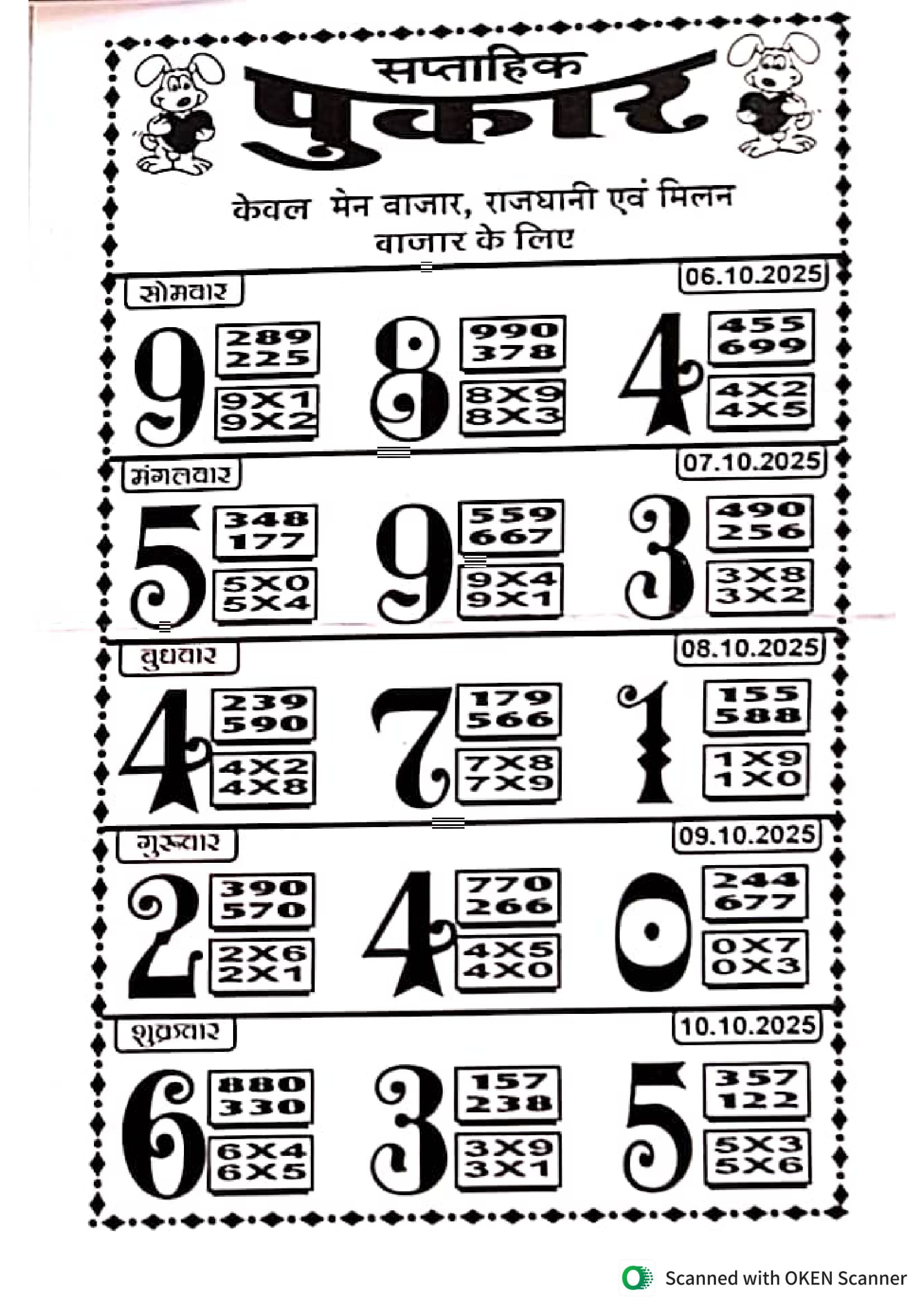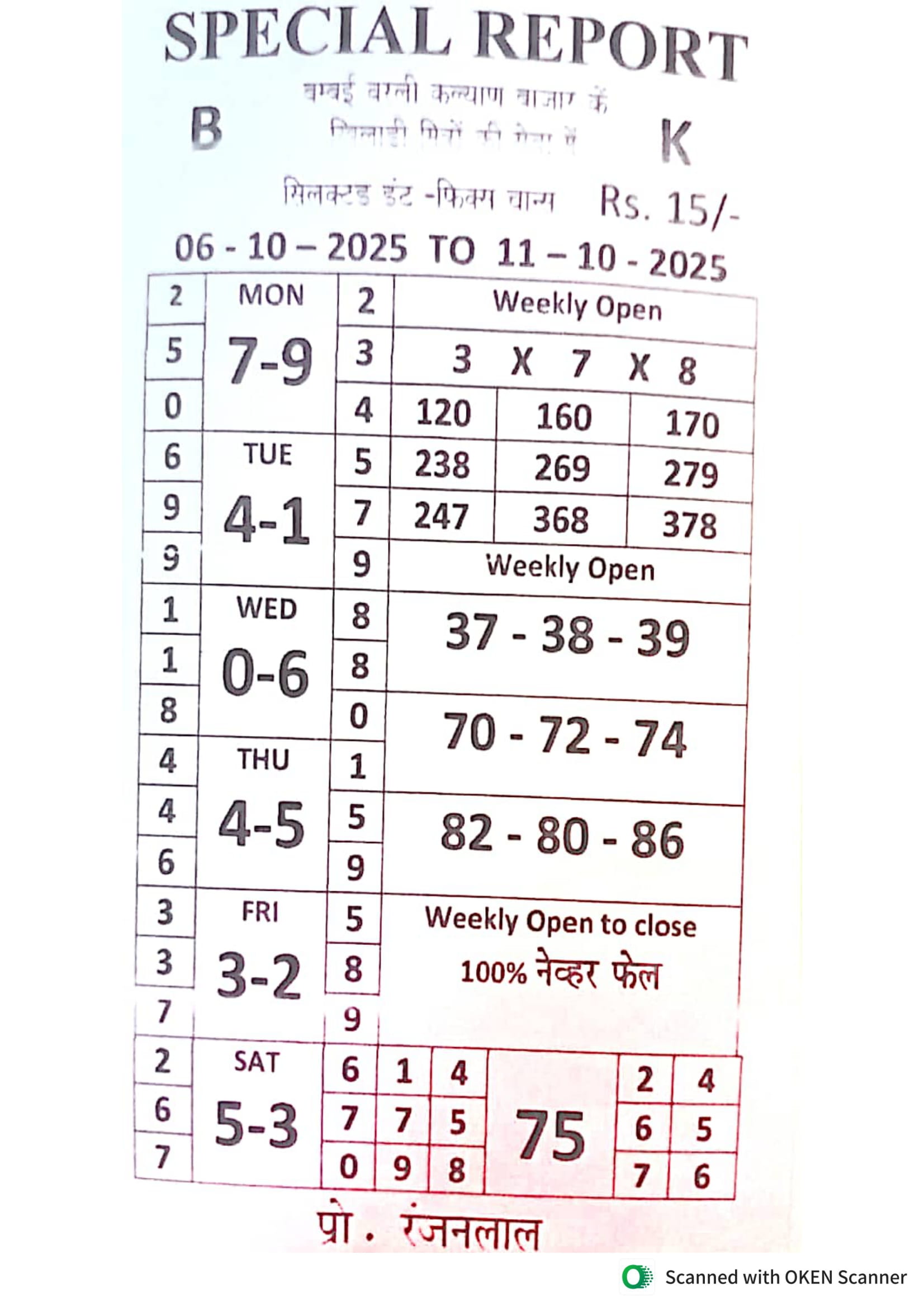 -: 06 Oct 2025 to 12 Oct 2025 :-