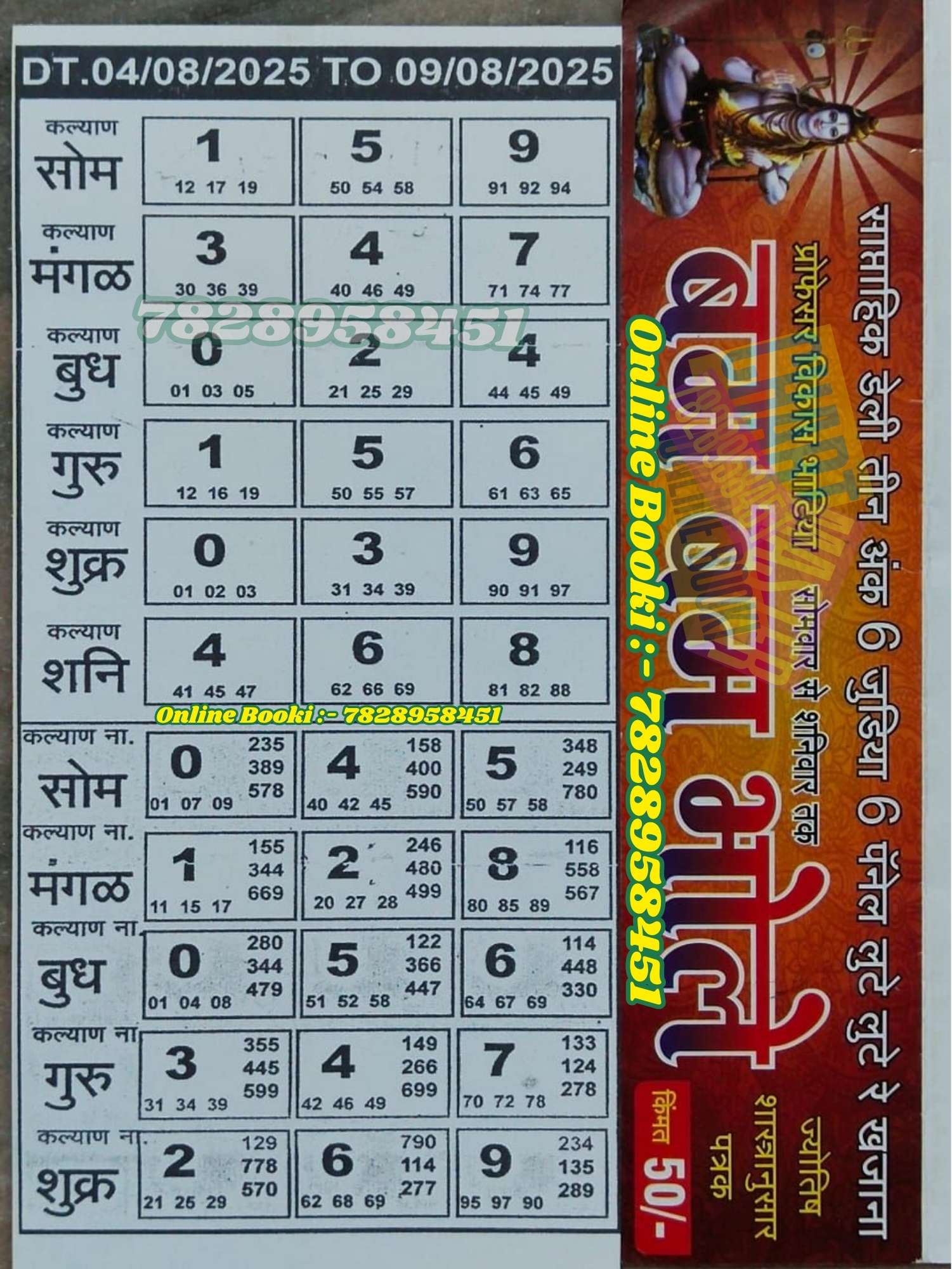 -: 04 Aug 2025 to 10 Aug 2025 :-