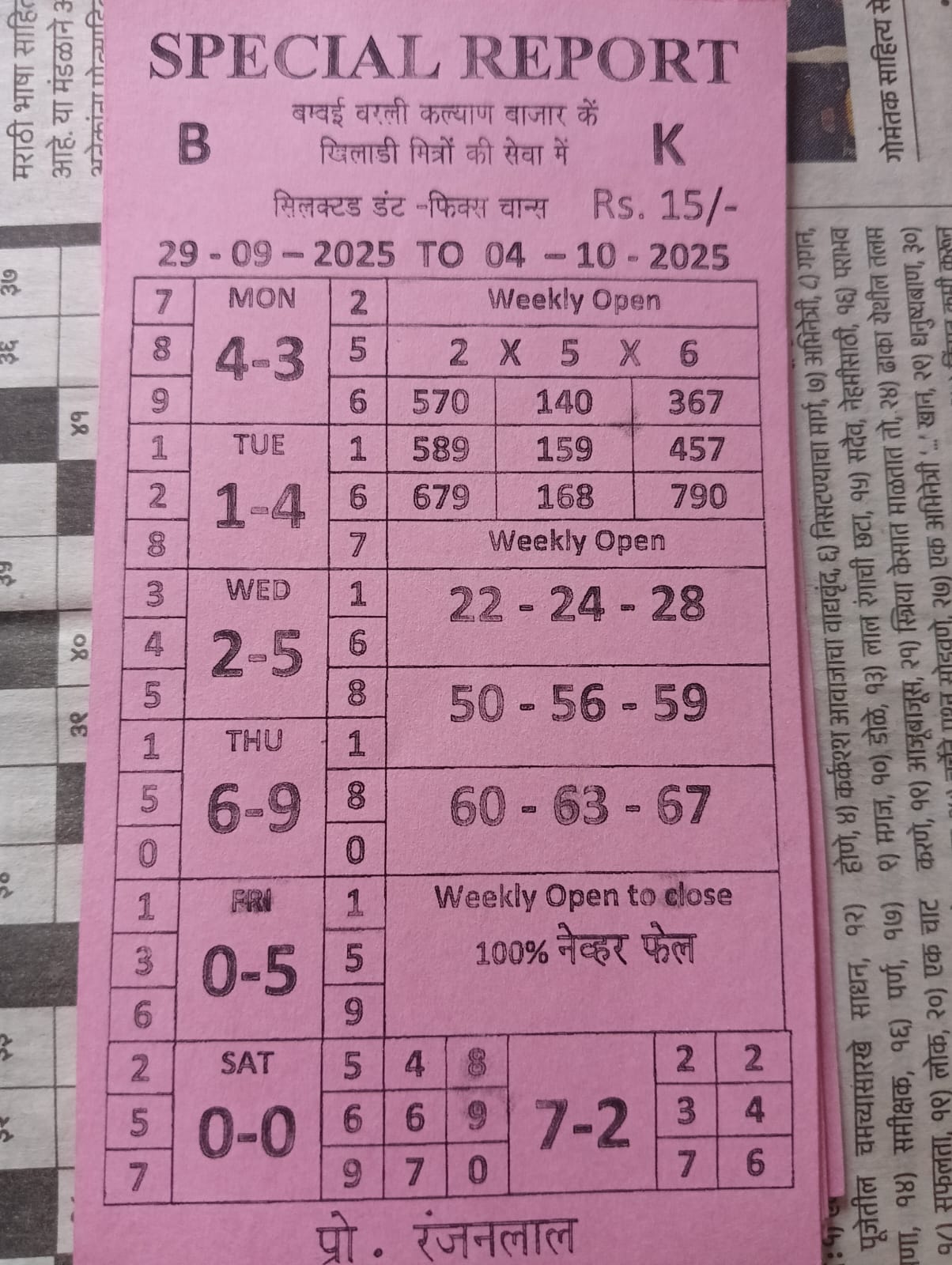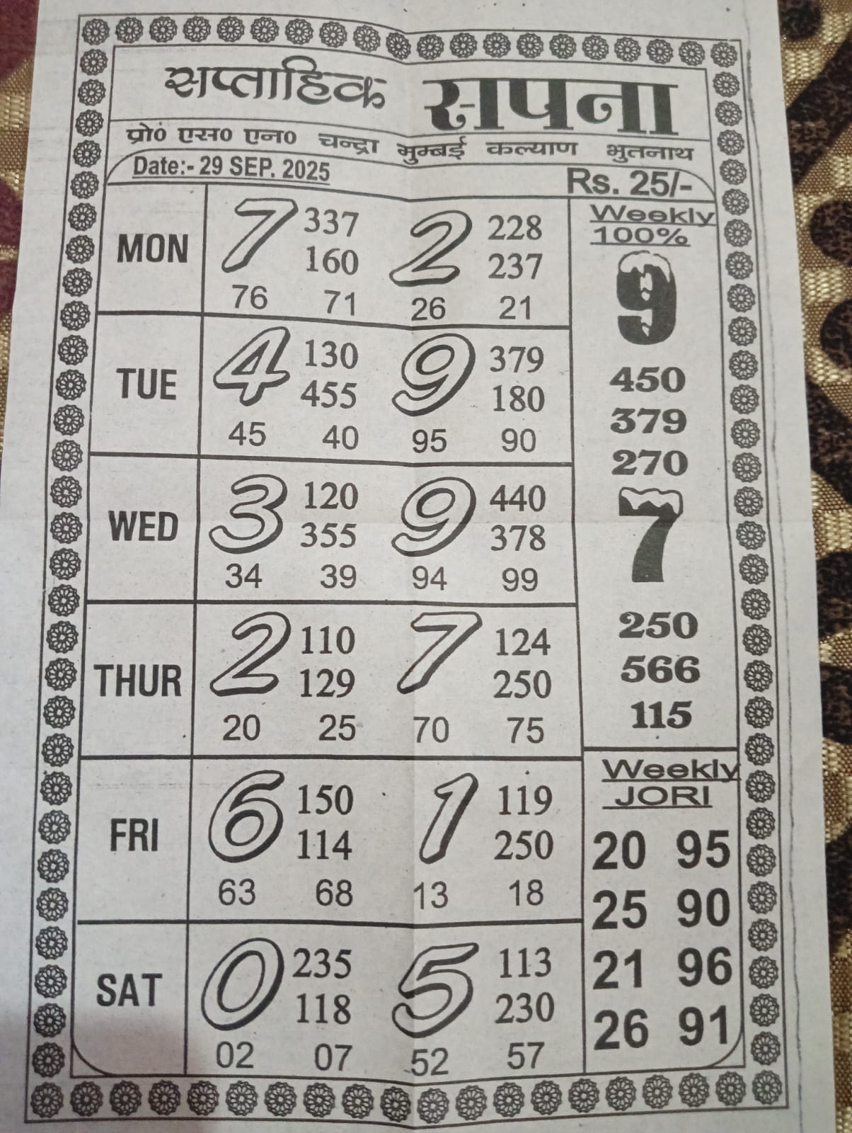 -: 29 Sep 2025 to 05 Oct 2025 :-