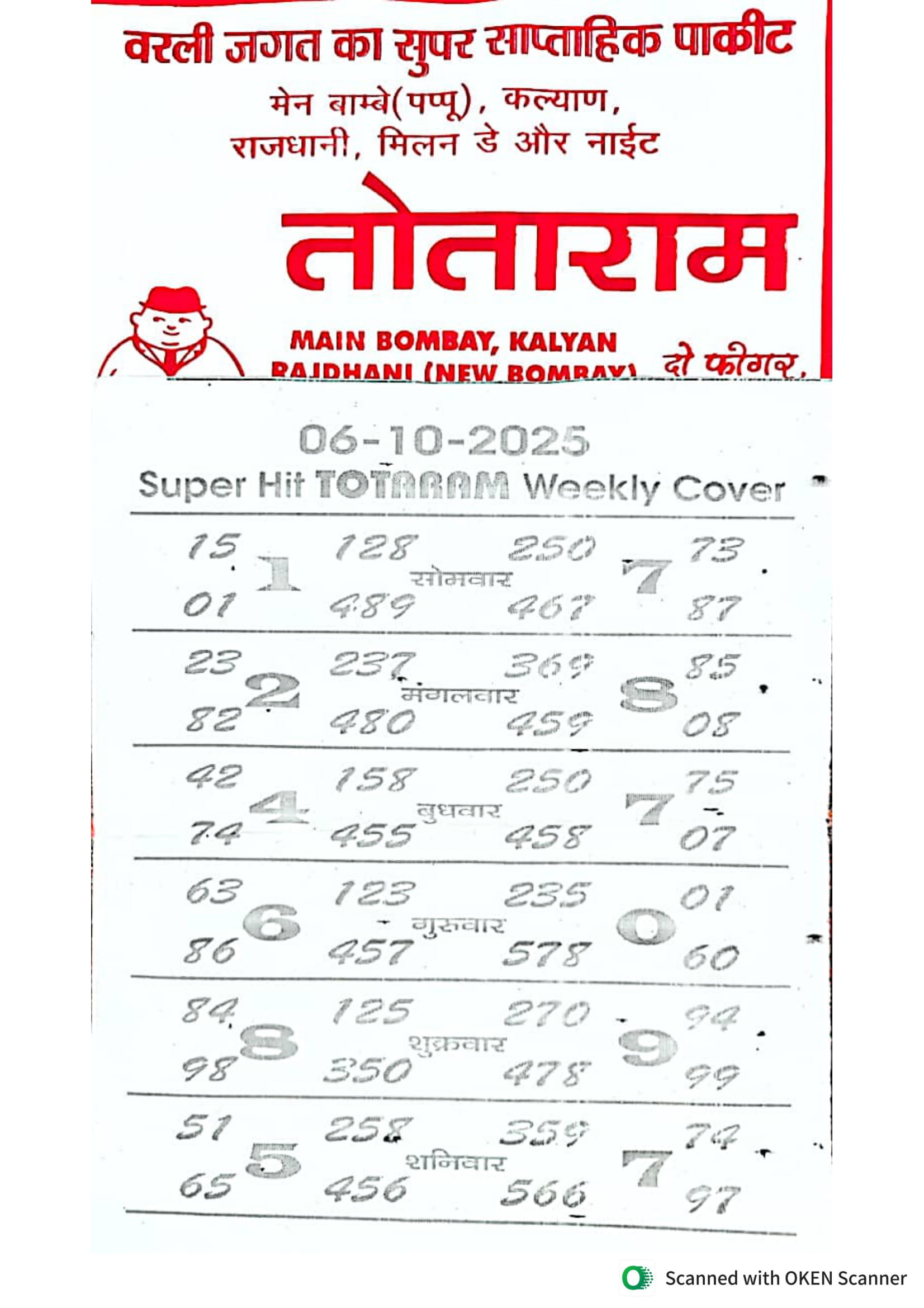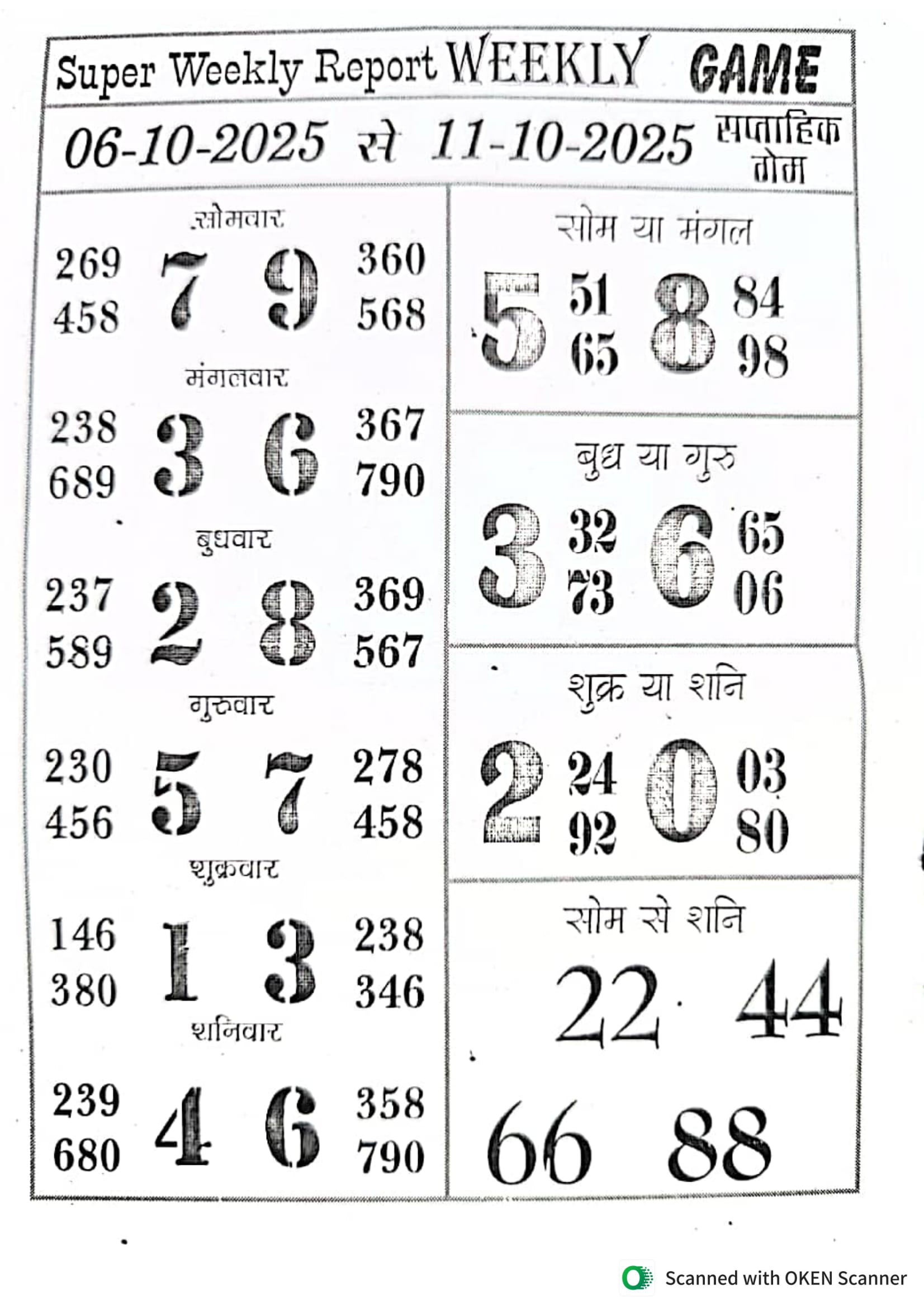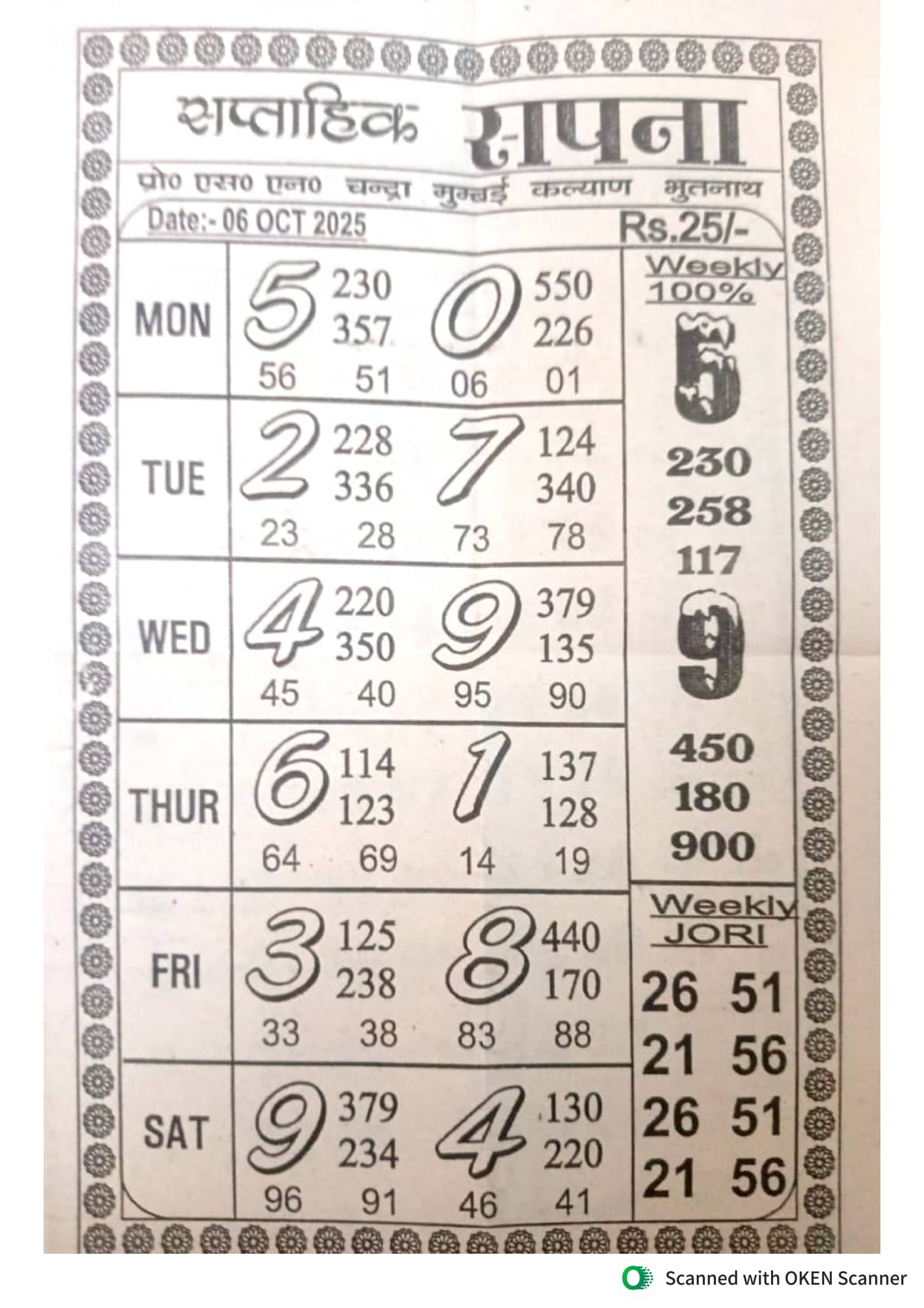 -: 06 Oct 2025 to 12 Oct 2025 :-