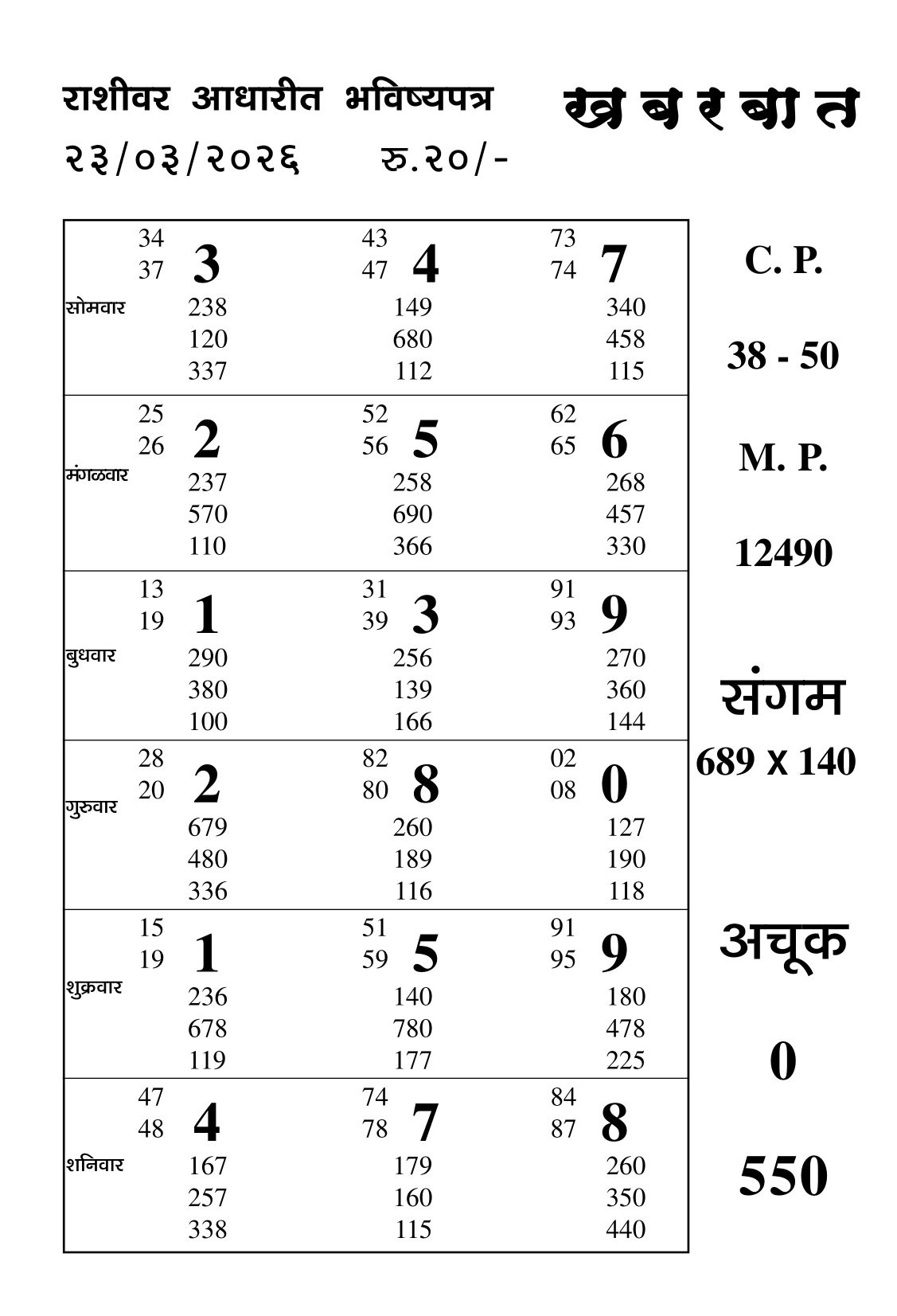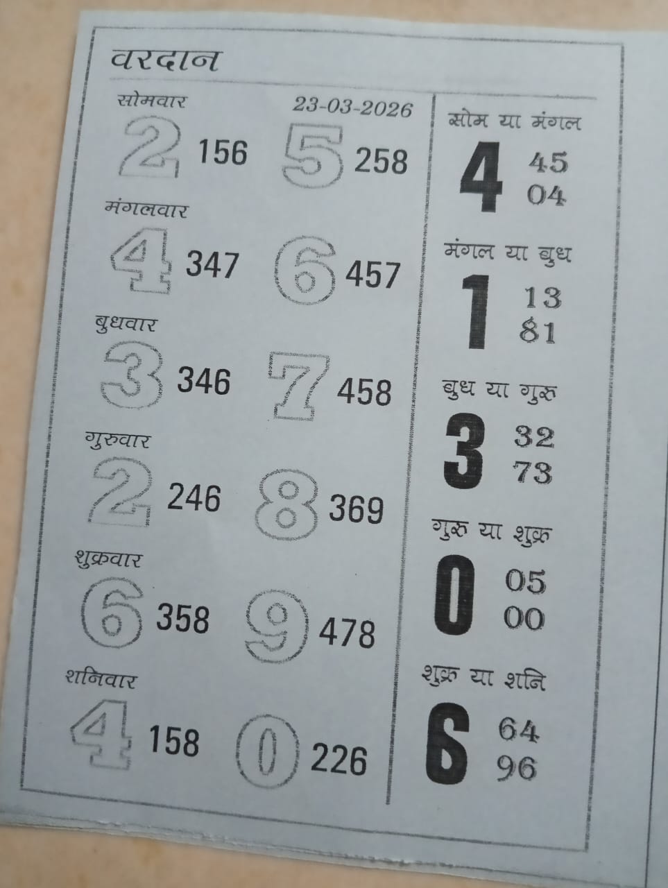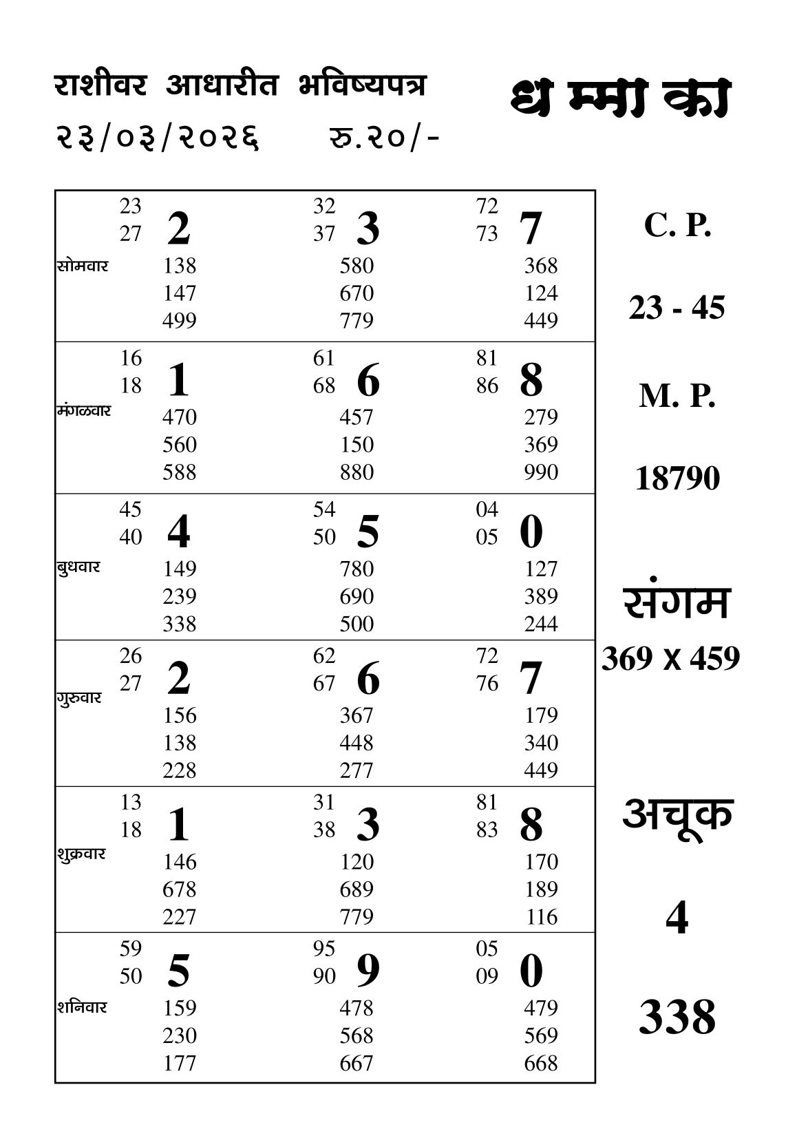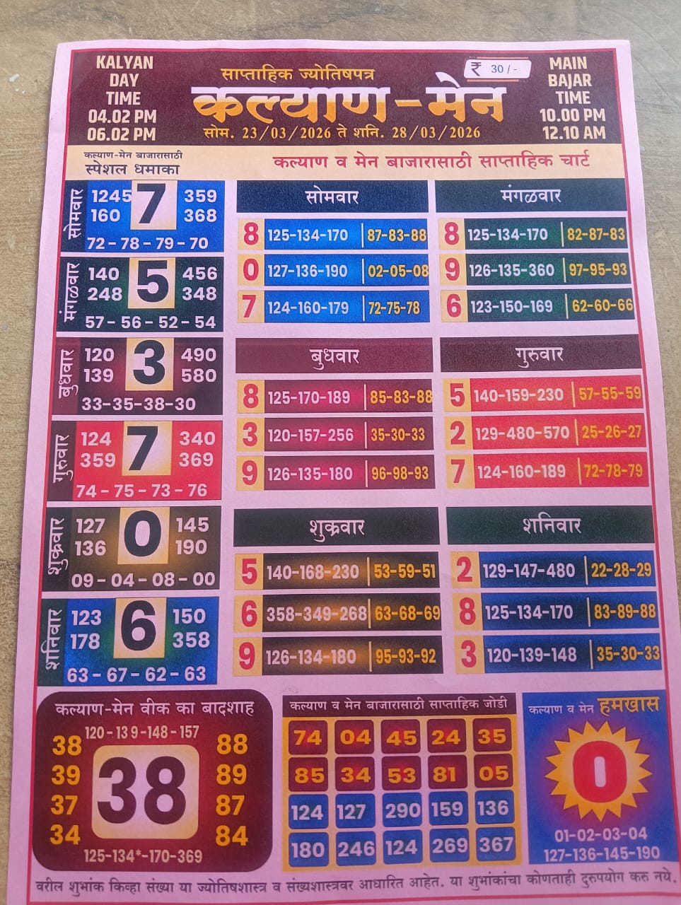 -: 23 Mar 2026 to 29 Mar 2026 :-