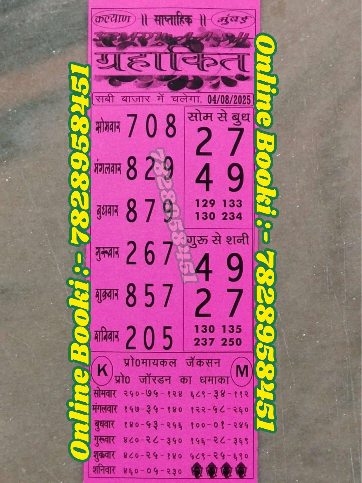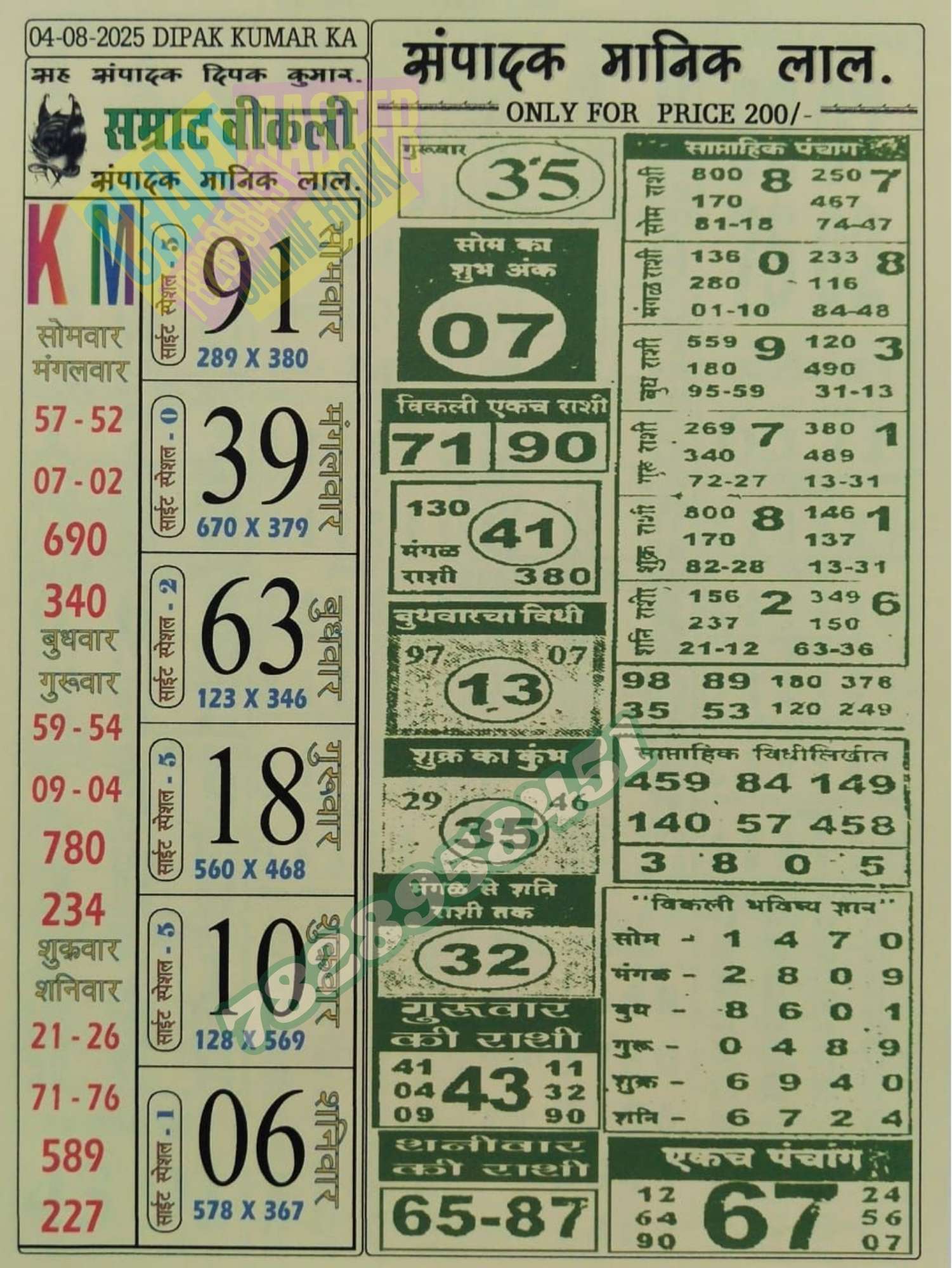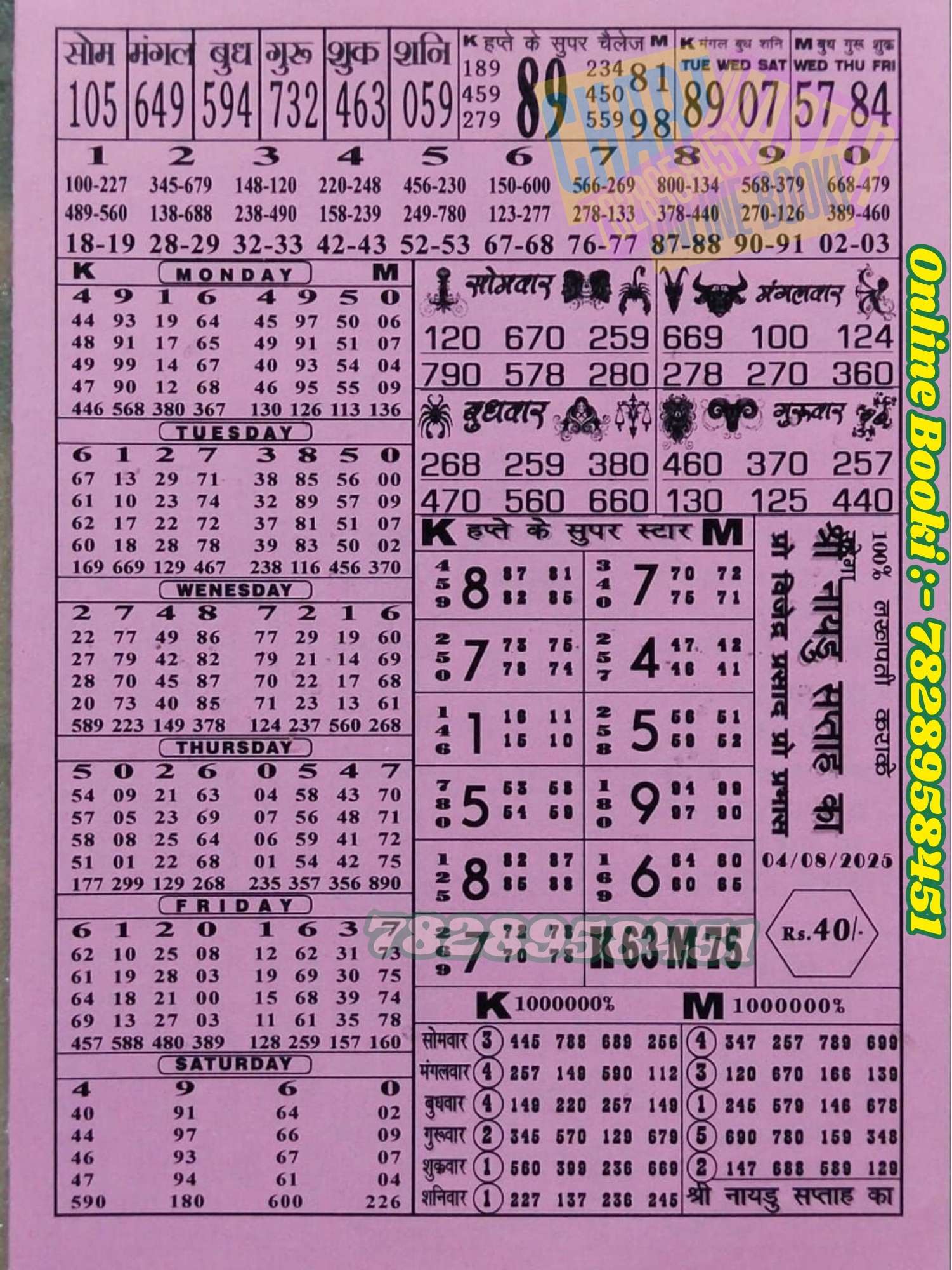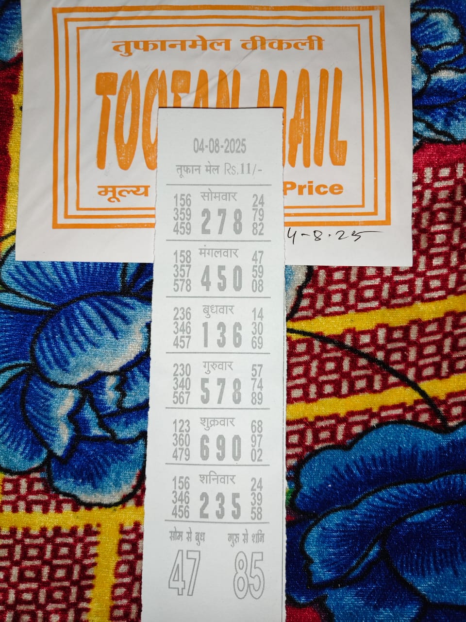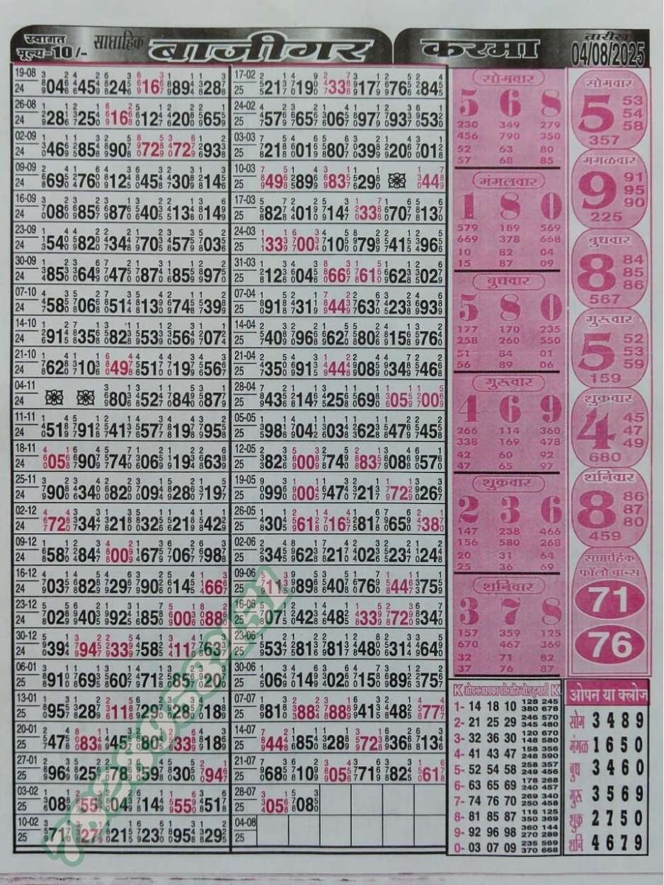 -: 04 Aug 2025 to 10 Aug 2025 :-