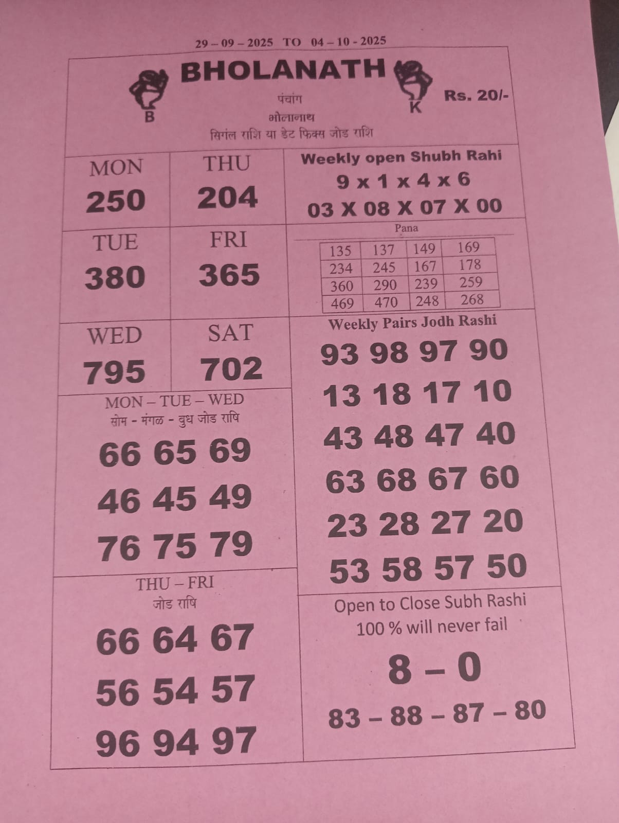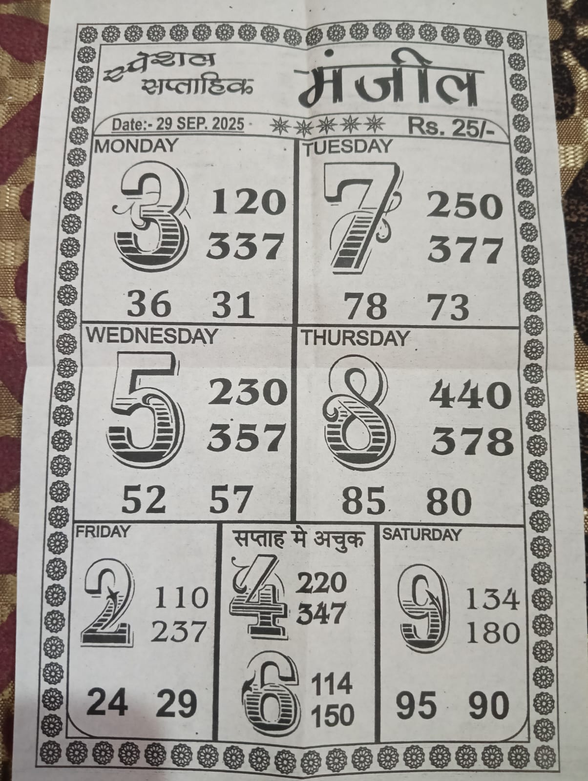 -: 29 Sep 2025 to 05 Oct 2025 :-