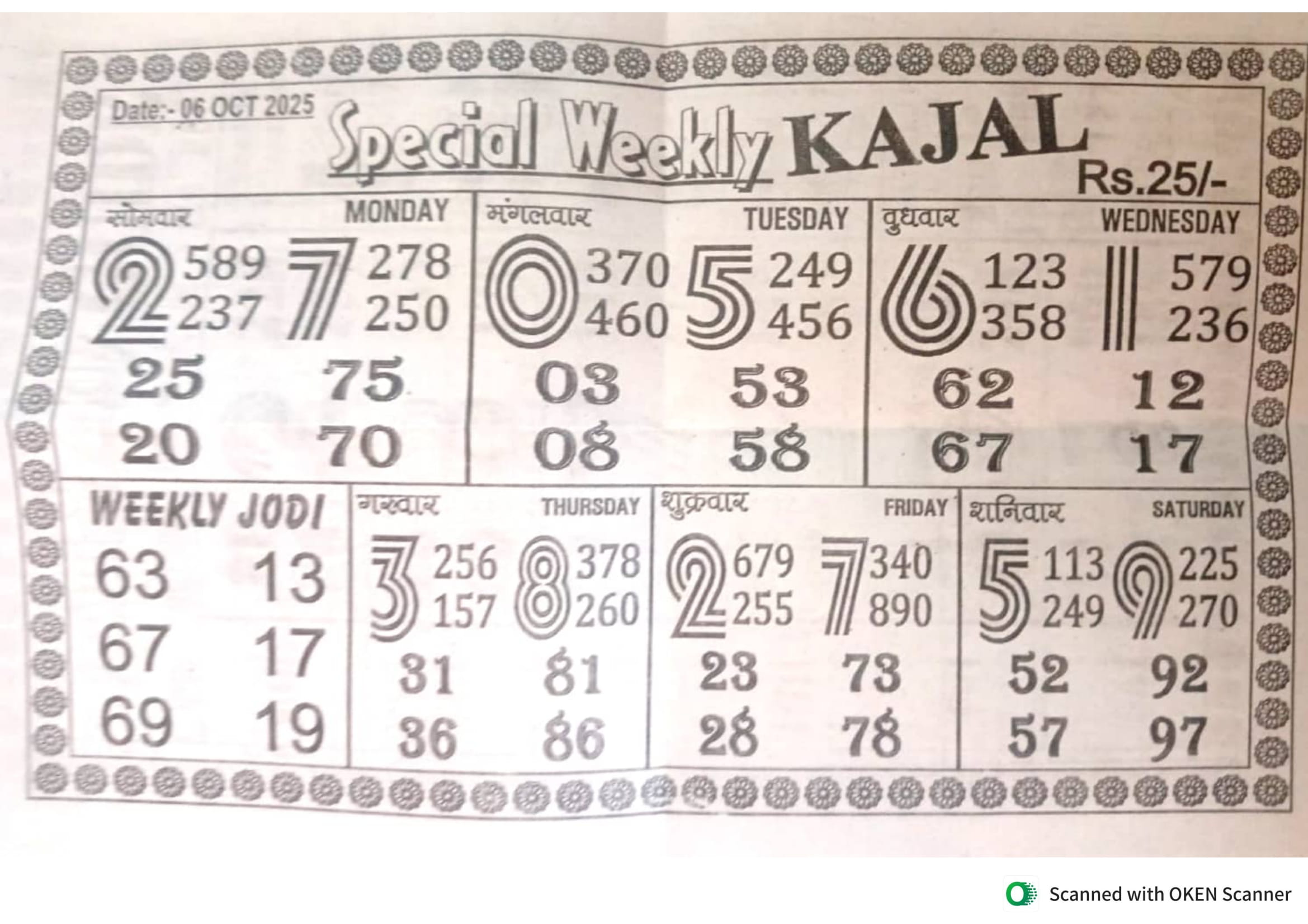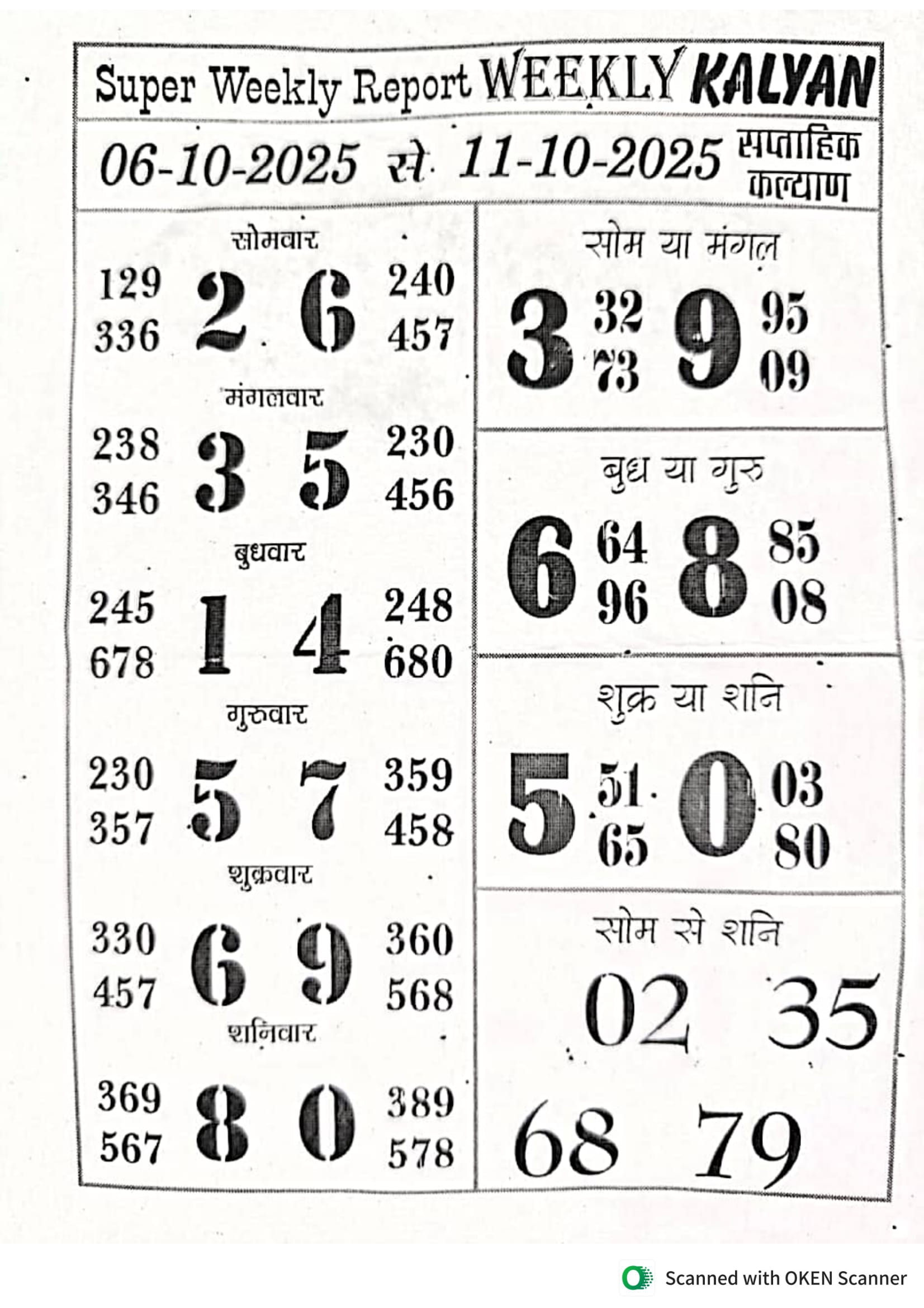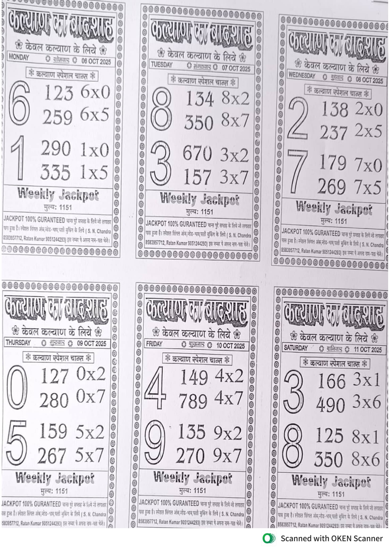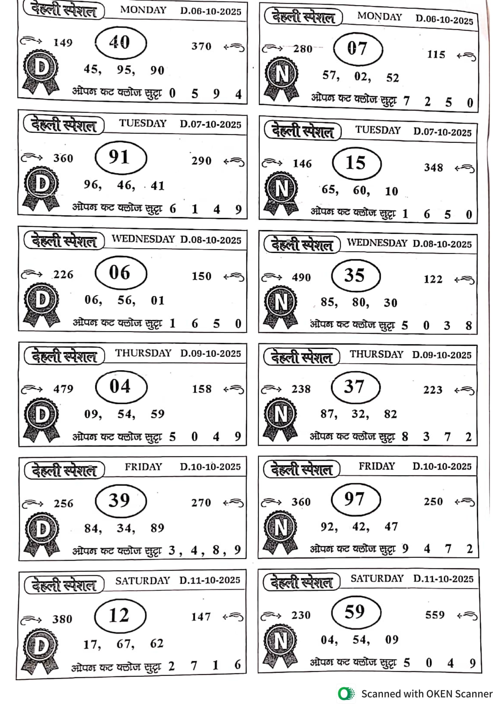 -: 06 Oct 2025 to 12 Oct 2025 :-
