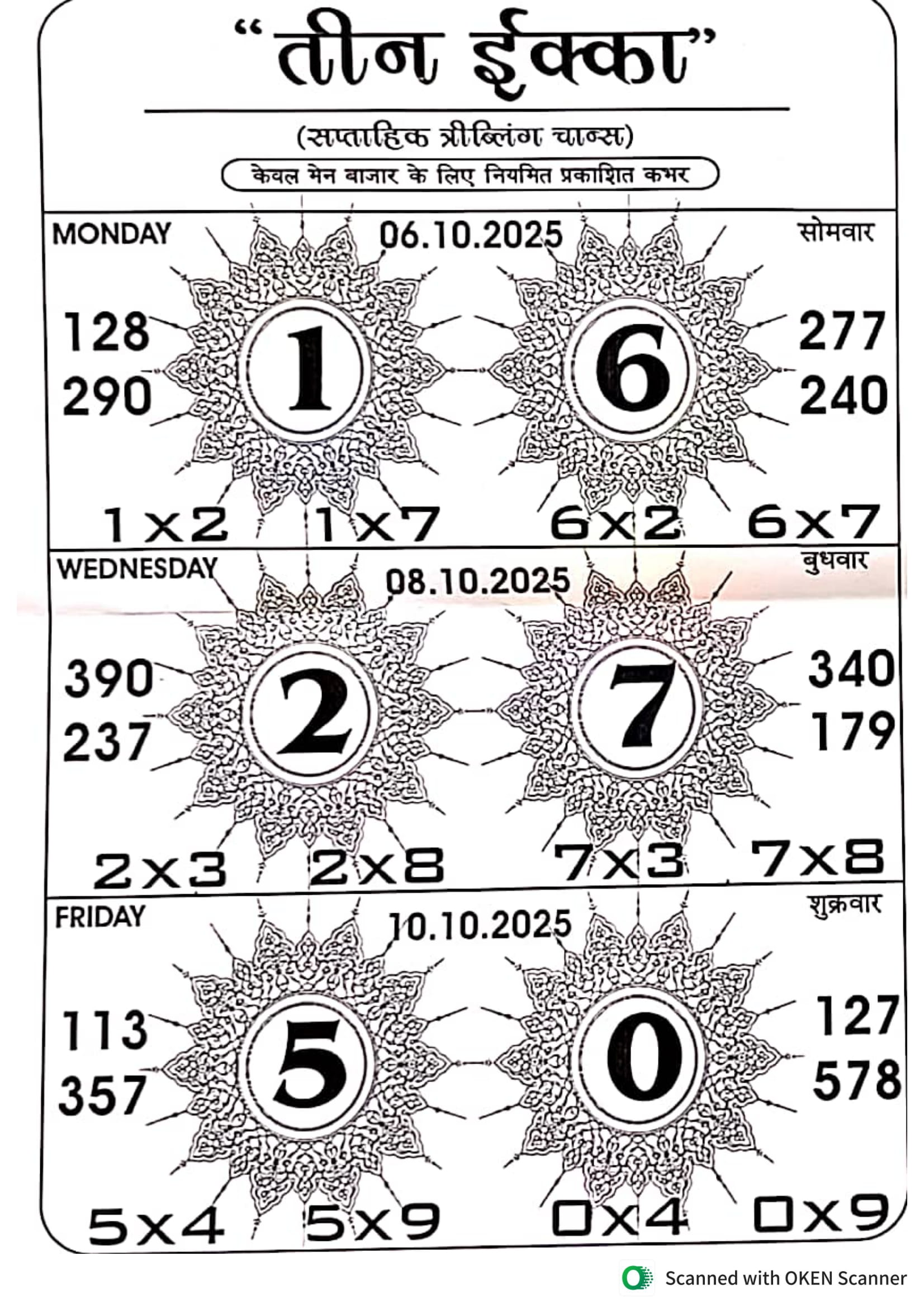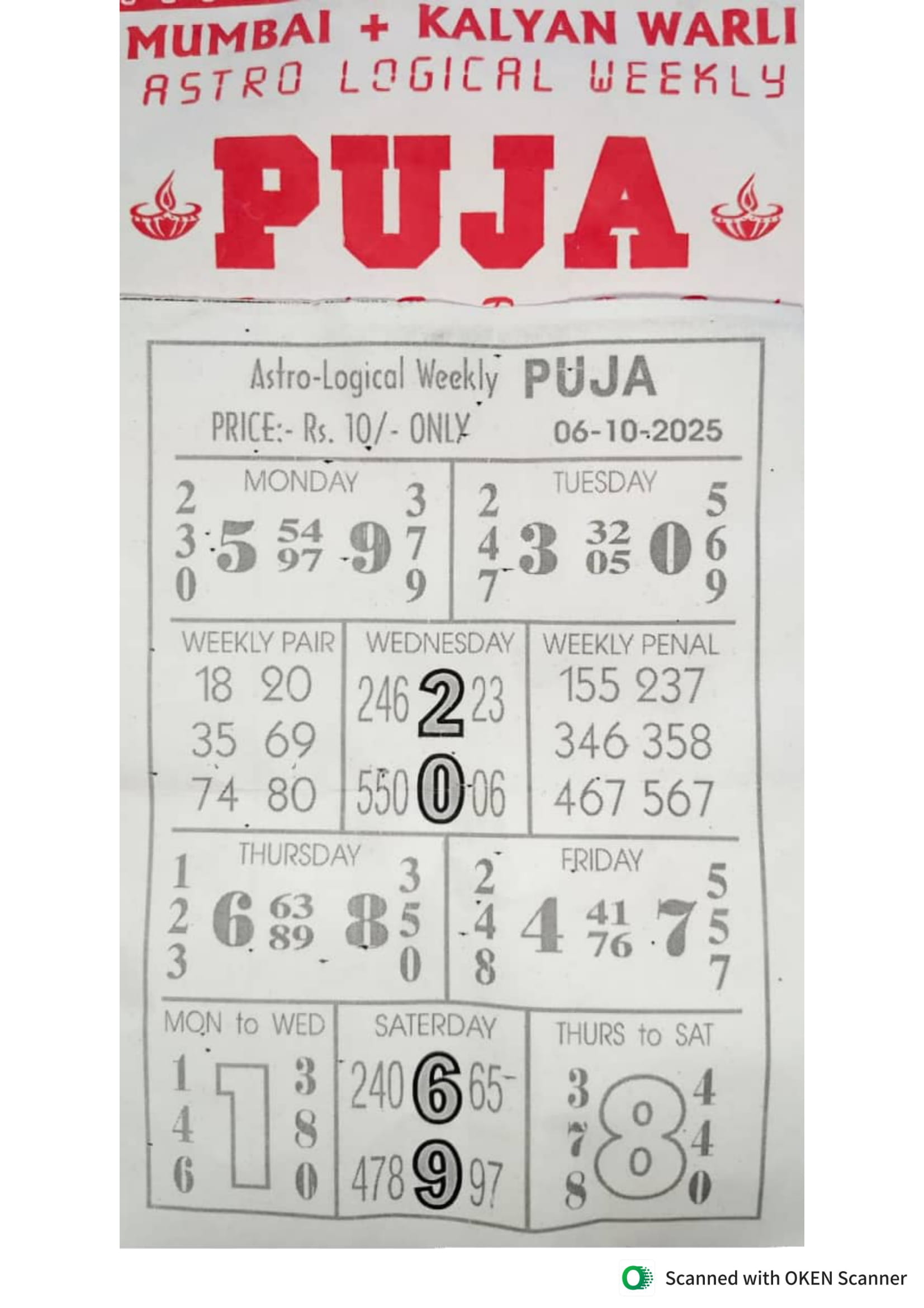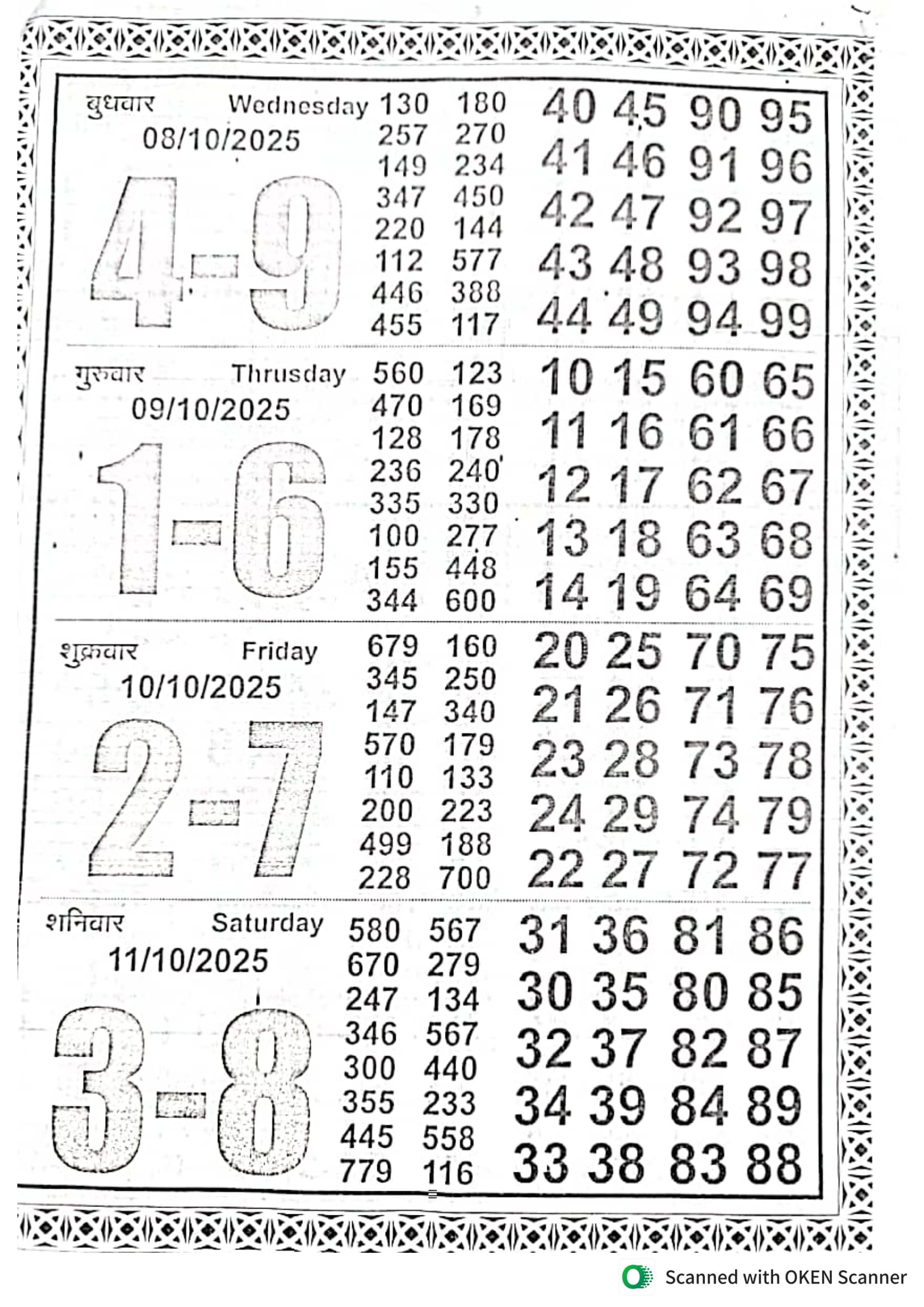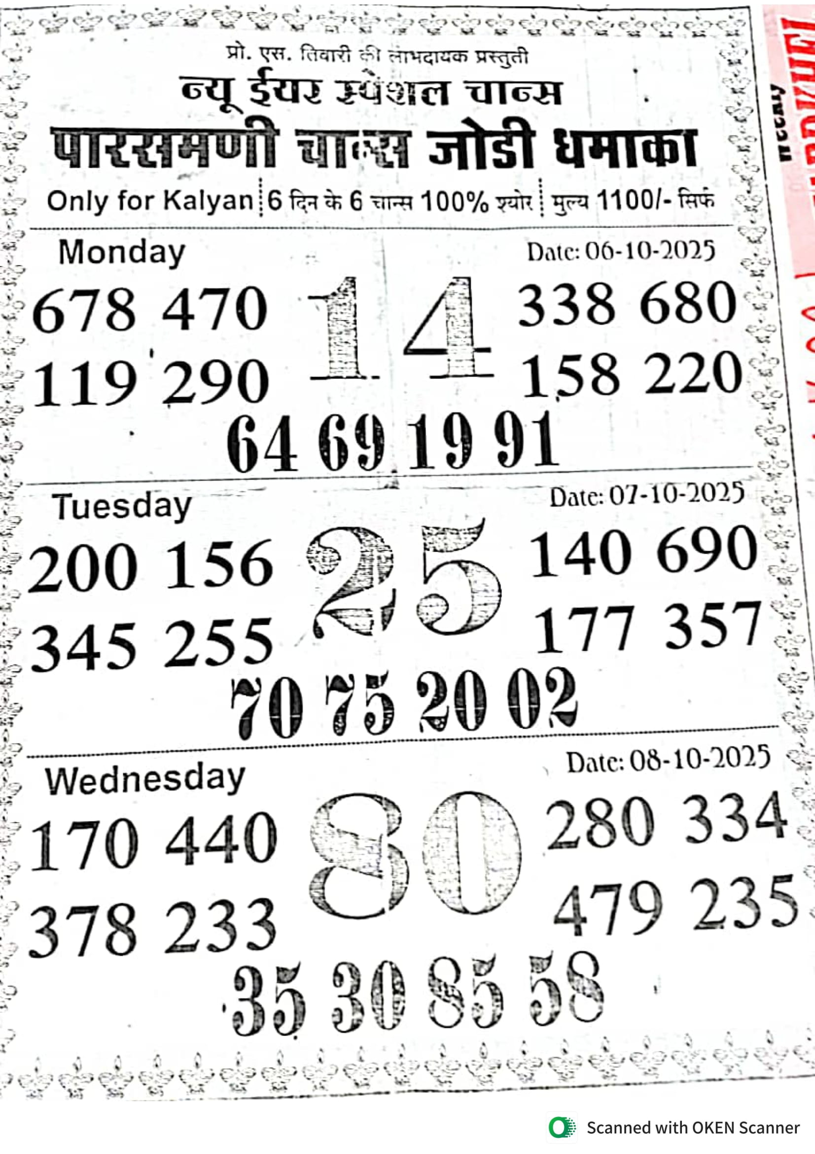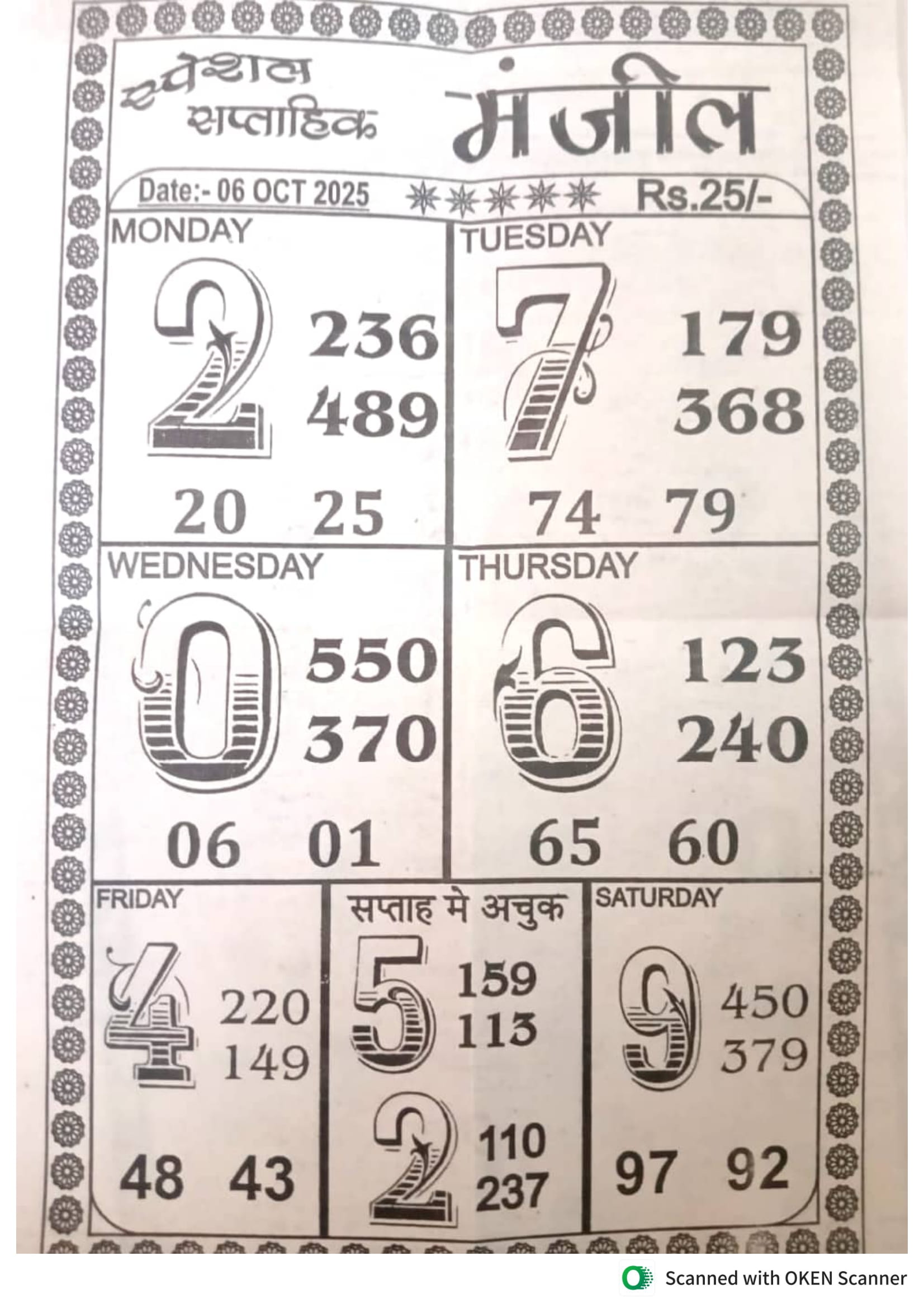 -: 06 Oct 2025 to 12 Oct 2025 :-