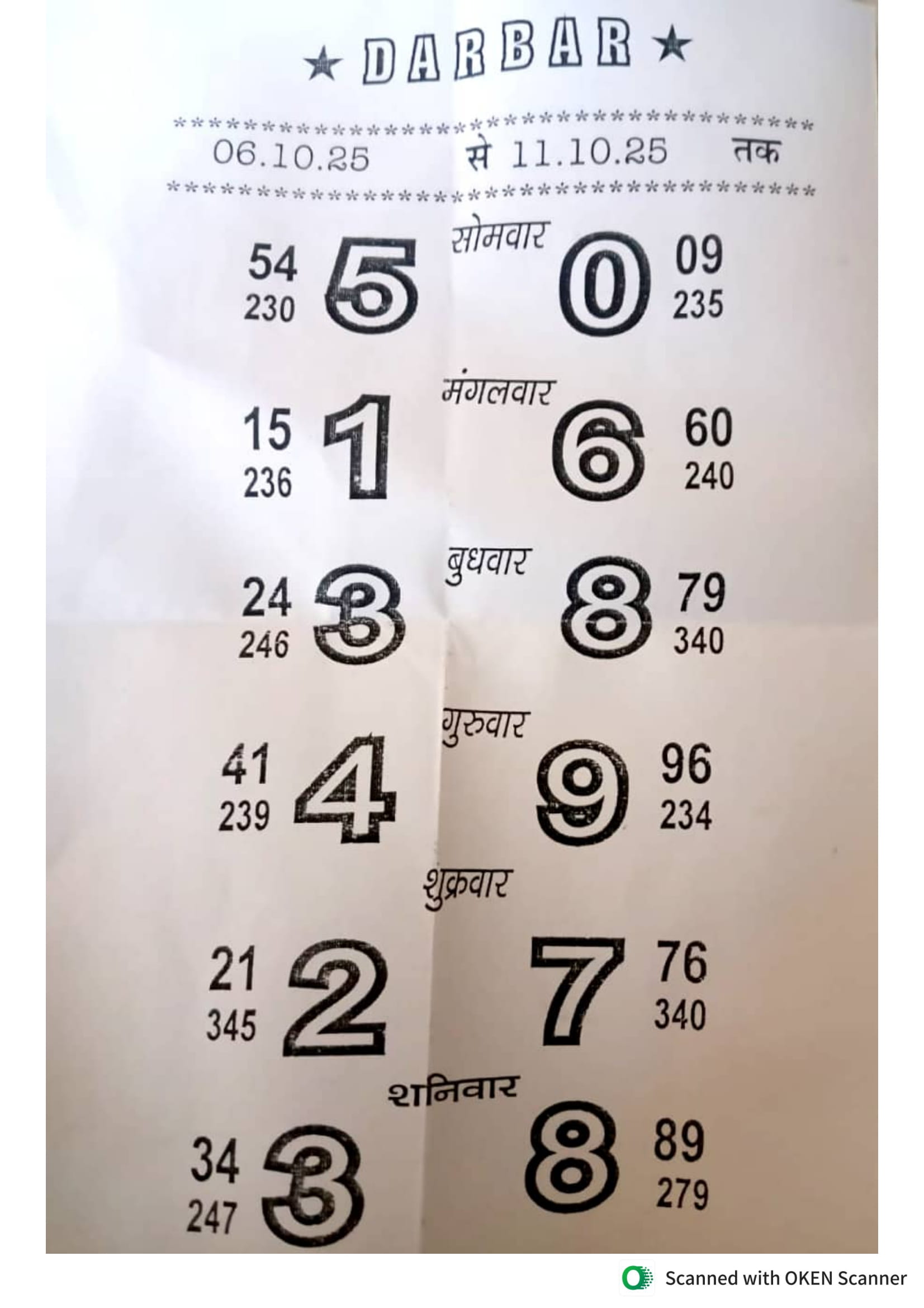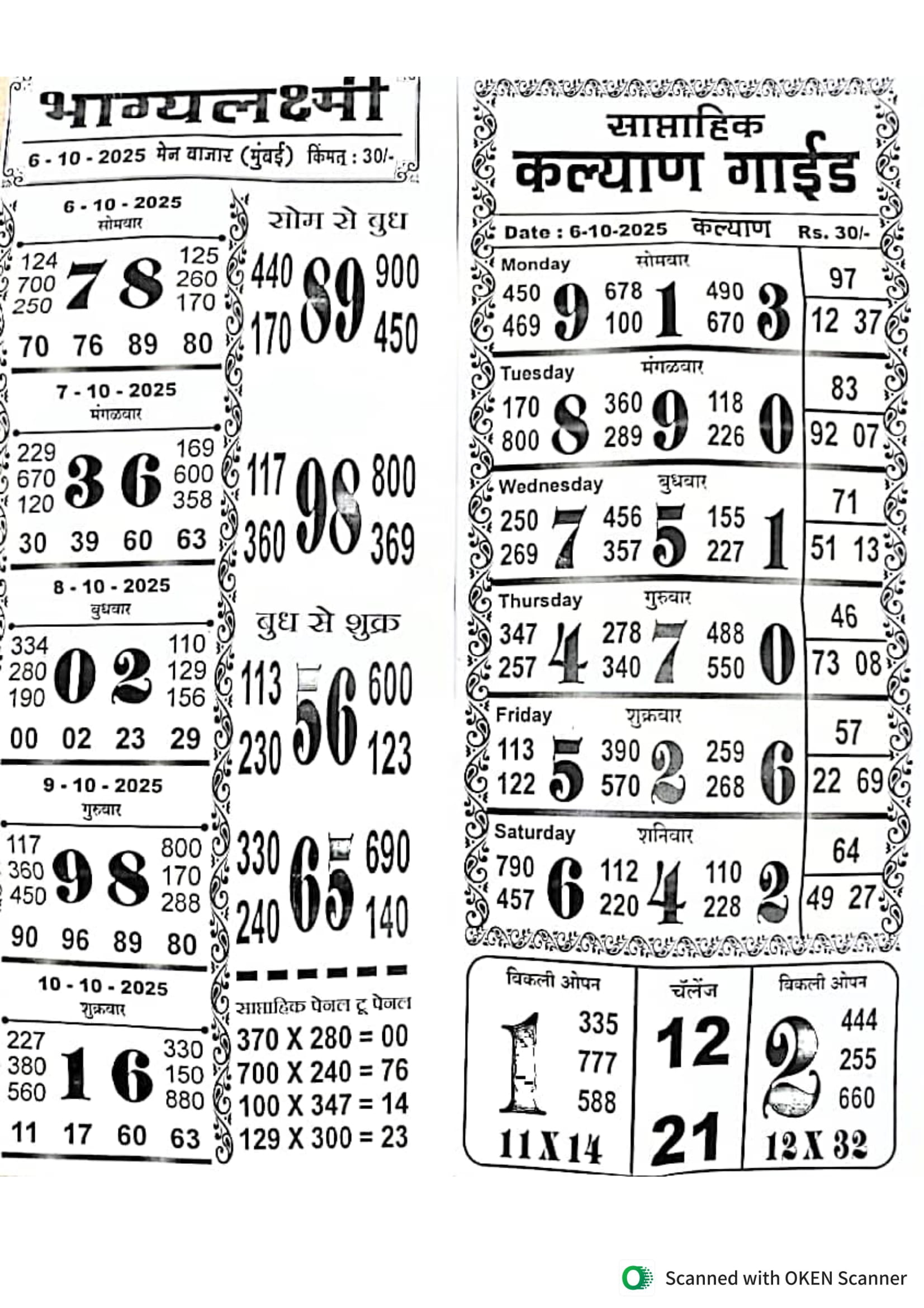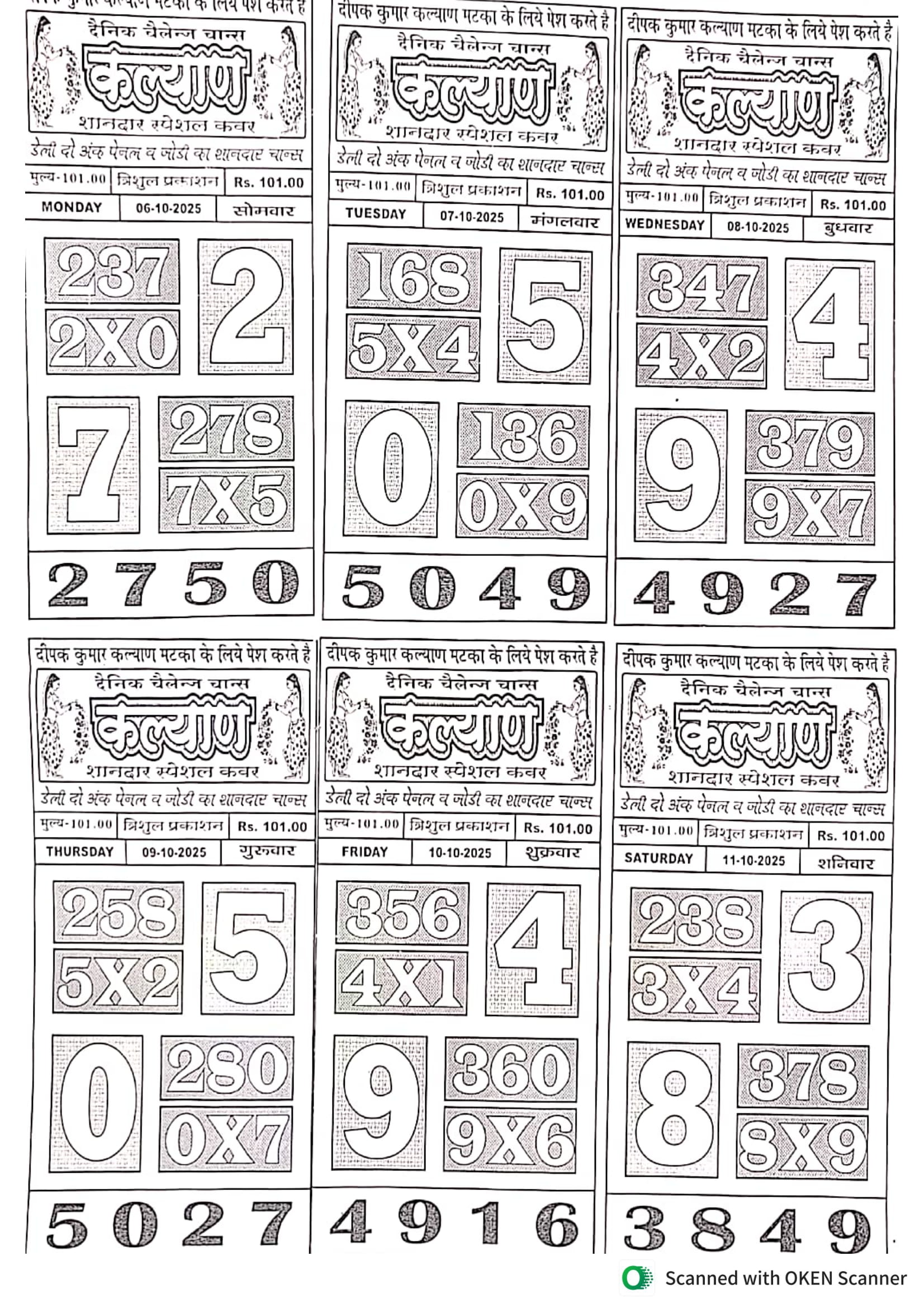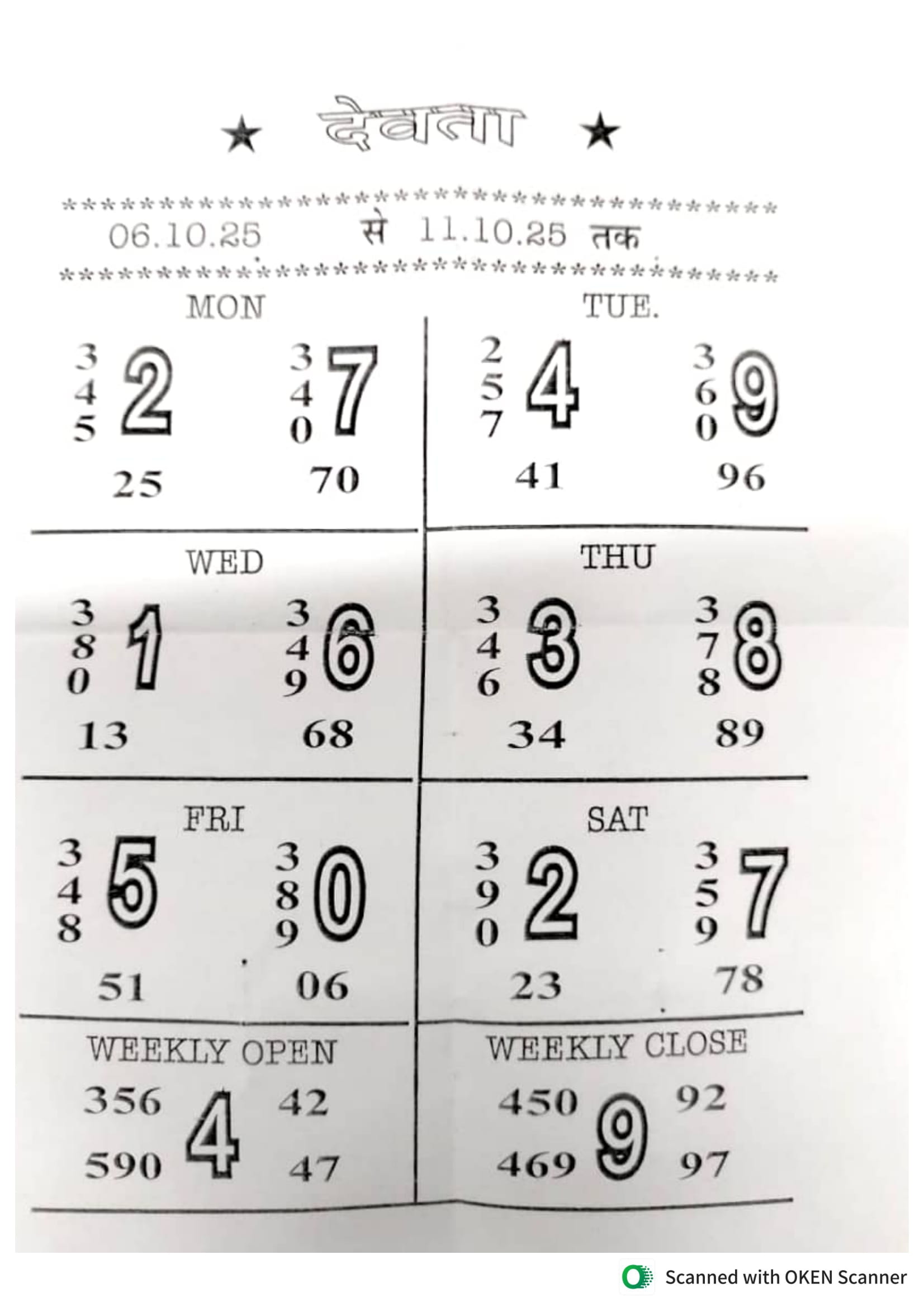 -: 06 Oct 2025 to 12 Oct 2025 :-