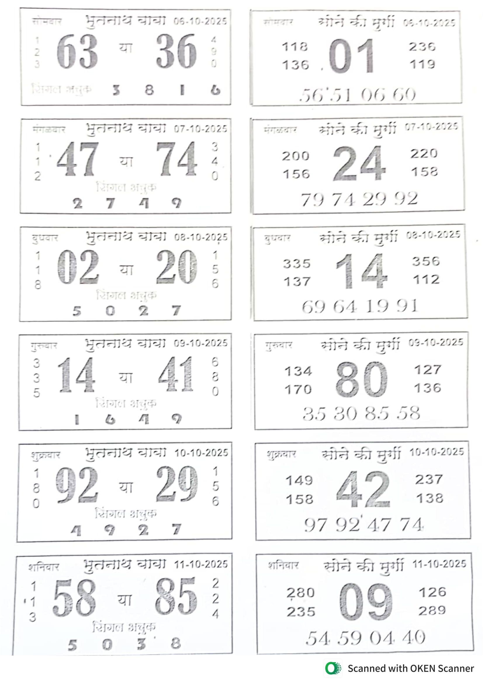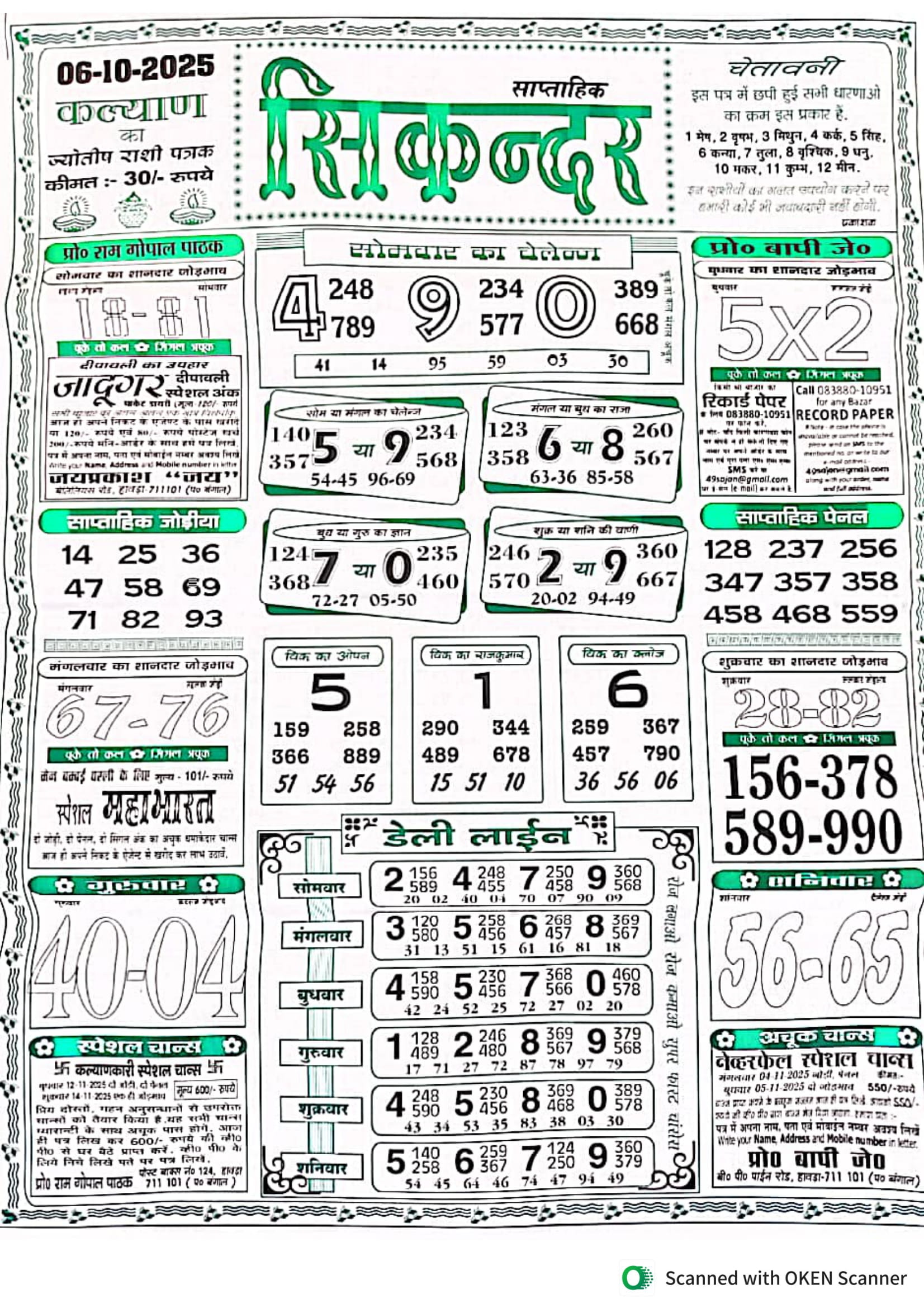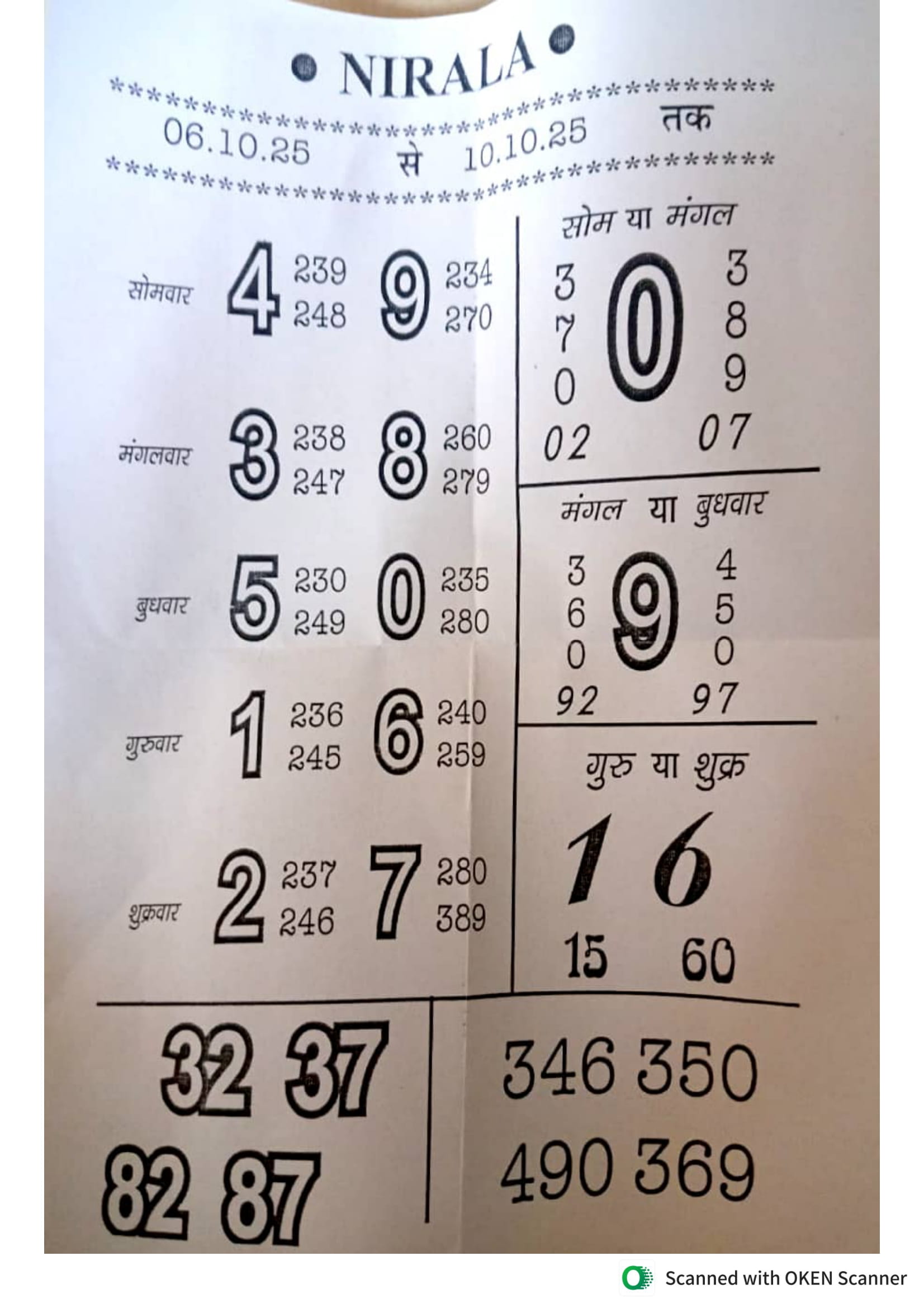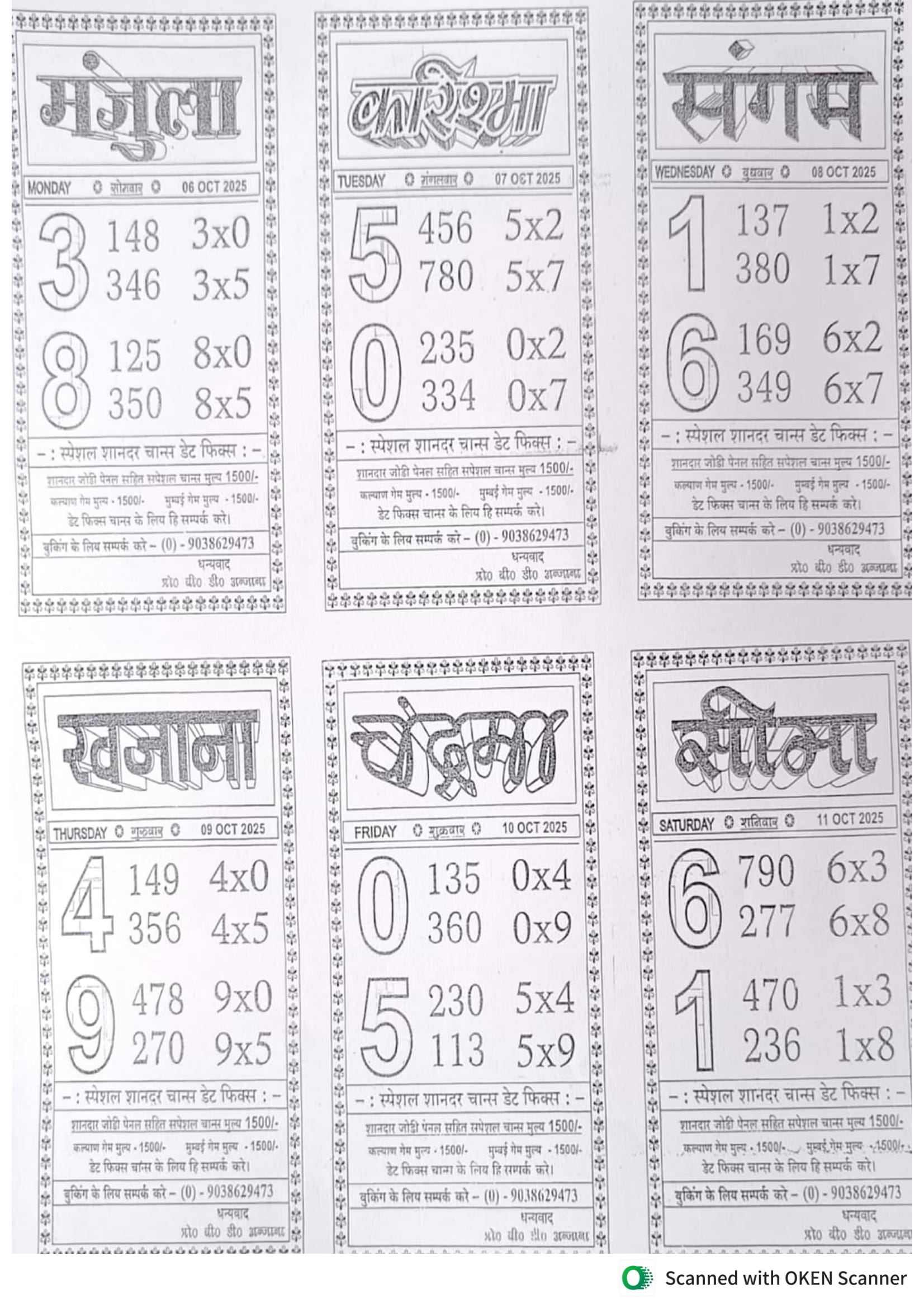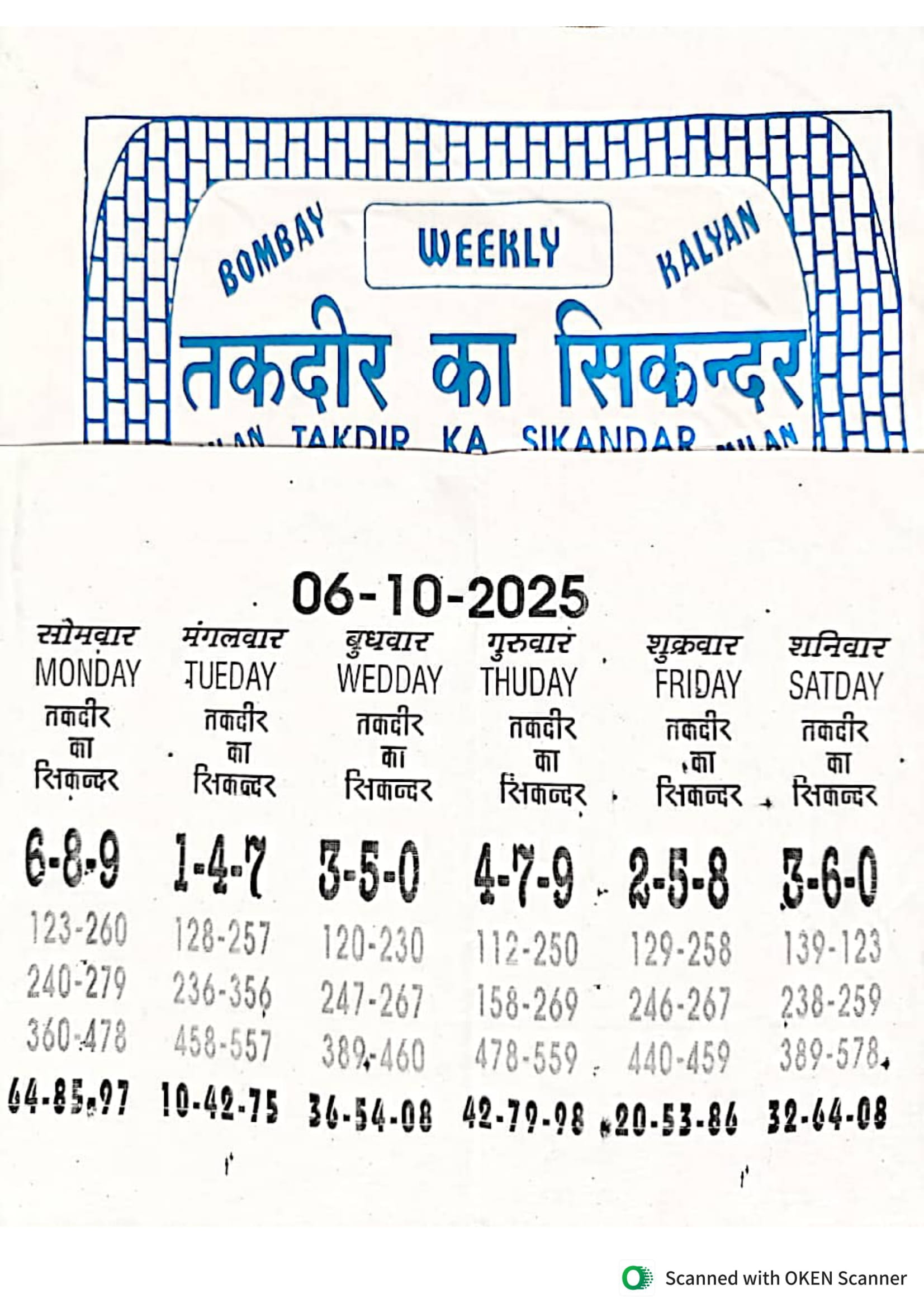 -: 06 Oct 2025 to 12 Oct 2025 :-