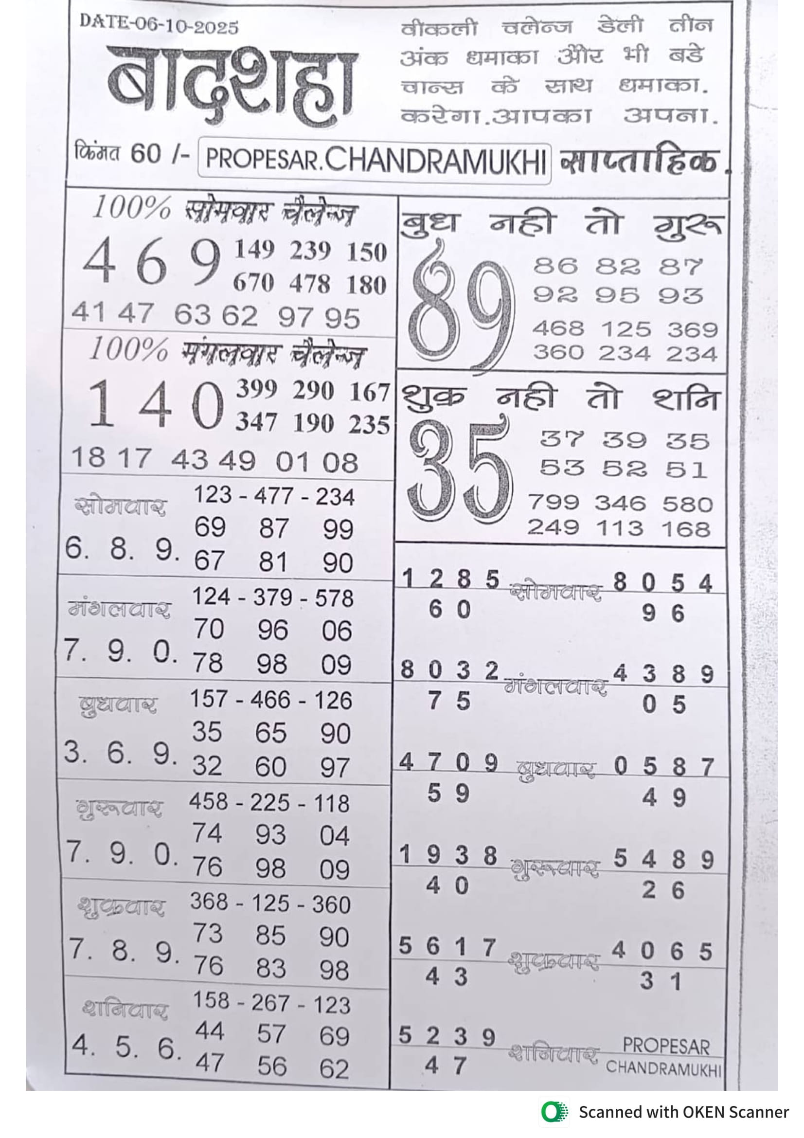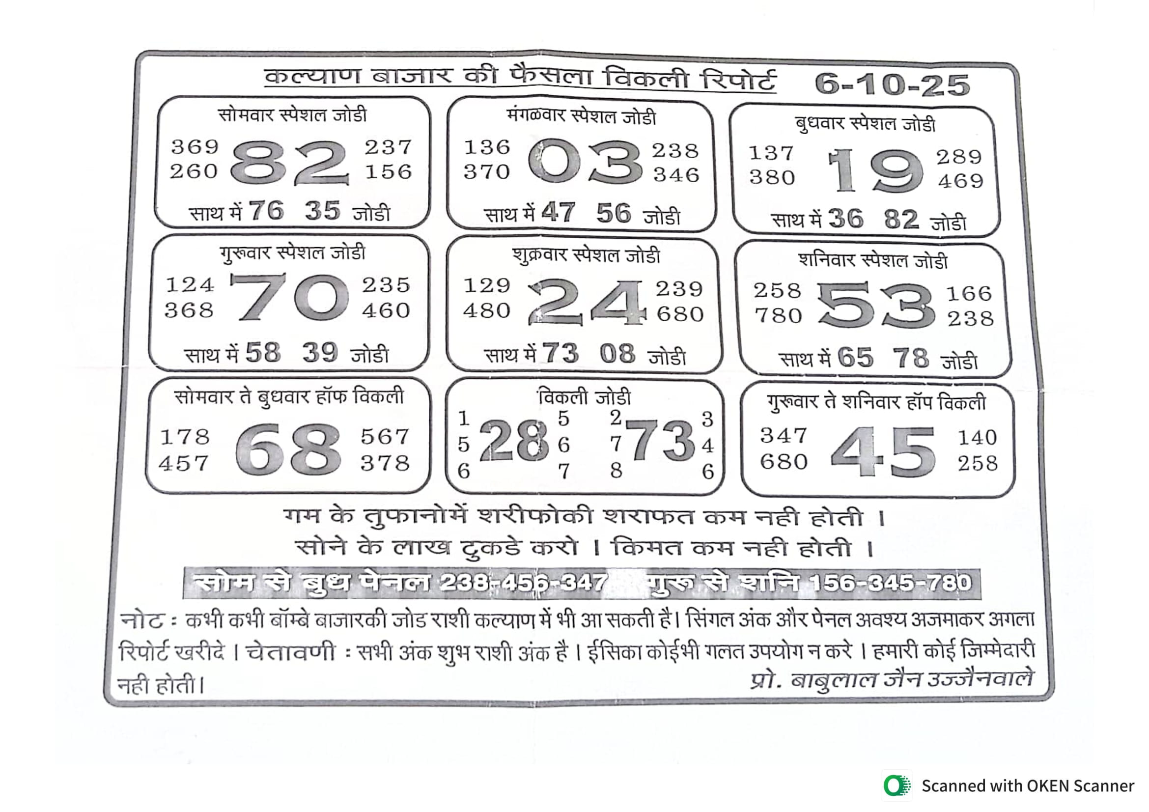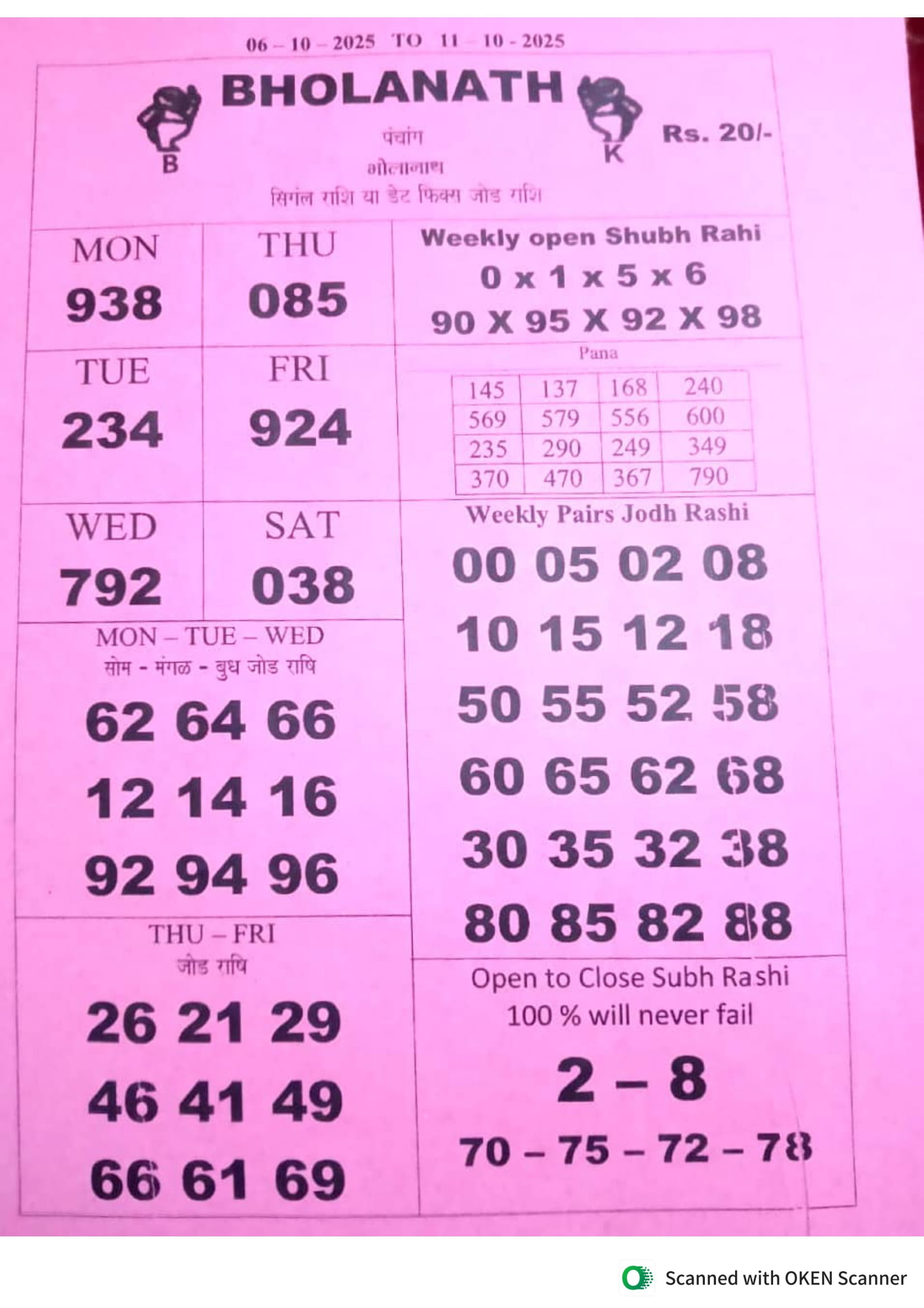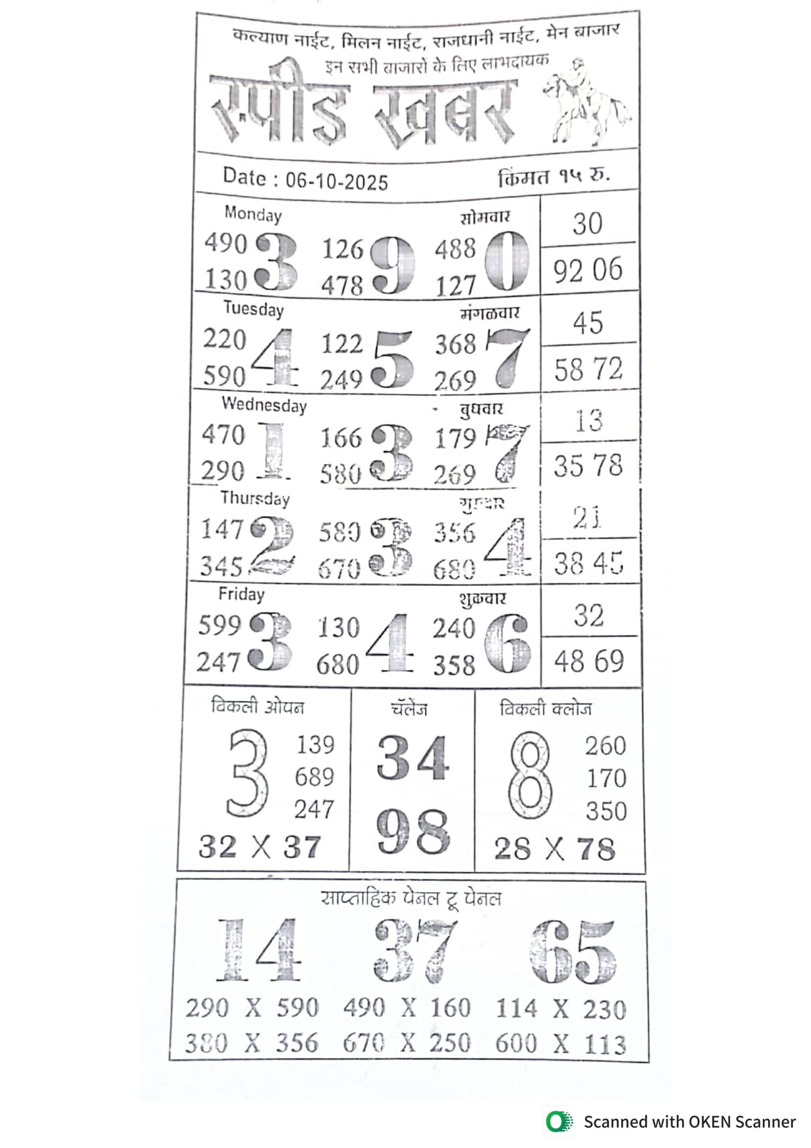 -: 06 Oct 2025 to 12 Oct 2025 :-